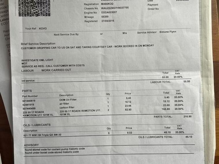 This car comes with 5 seats, White, 4 owners, 17in Alloy Wheels - 10-Spoke Design, 4-Way Electric Lumbar Support, ABS - Anti-Lock Braking System, AMI - Audi Music Interface, AUX-IN Socket, Acoustic Glazing, Airbags, Aluminium-Effect Bootlid-Tailgate Trim, Anti Theft Locking Wheel Bolts, Anti-Theft Alarm, Audi Drive Select, Audi Hill Hold Assist, Audi Parking System Plus, Audi Sound System, Auto-Dimming Rear-View Mirror, Bi-Xenon Headlights, Bluetooth Interface, Body Coloured Door Mirrors, Cruise Control, Deluxe 4-Zone Automatic Climate Control, Door Mirrors - Electrically Adjustable and Heated, Door Sill Trims with Aluminium Inlay, Drivers Information System - DIS, Dynamic Suspension, ESC - Electronic Stabilisation Control, Electric Windows - Front and Rear, Electromechanical Parking Brake, Front Centre Armrest, Front Passenger Airbag Deactivation Switch, Front and Rear Floor Mats, Heated Front Seats, High Gloss Package, ISOFIX Child Seat Mounting, Inlays - Aluminium Ellipse, Keyless Go, LED Rear Lights, Light and Rain Sensor, MMI Navigation - SD Card Based, MMI Radio Plus and DAB, Non-Smoking Package, Power Steering, Remote Central Locking, Seat Belt Monitoring, Space Saver Spare Wheel, Split-Folding Rear Seats, Sport Front and Rear Bumpers - Side Ventilation Grilles and Side Skirts, Steering Wheel - 3-Spoke Leather-Multi-function with Shift Paddles, Tool Kit - Warning Triangle and Car Jack, Tow Bar Bracket Preparation, Tyre Pressure Loss Indicator,