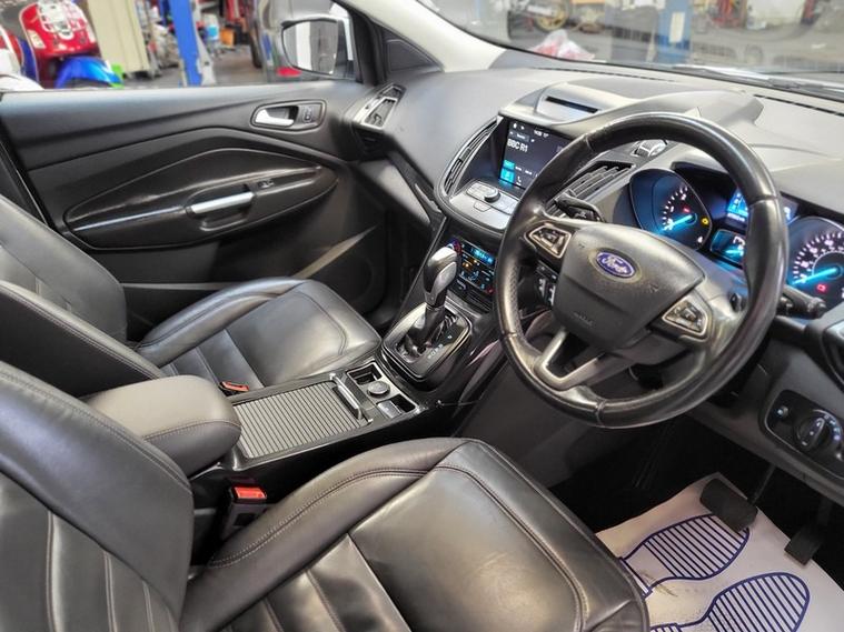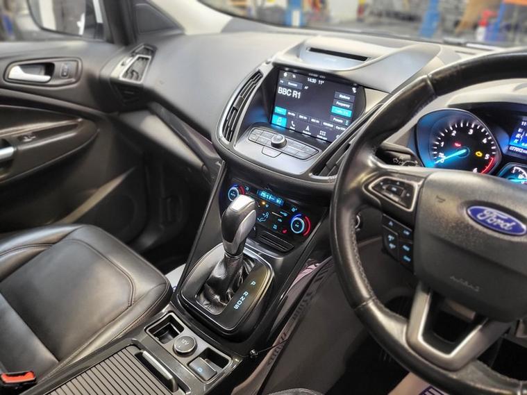 The 2017 Ford Kuga Titanium X TDCi Automatic is a premium mid-size SUV that combines strong diesel performance, comfort and practicality with high-end features and refined styling. Powered by a 2.0-litre TDCi diesel engine producing 150 or 180 bhp (depending on variant), paired with Ford?s smooth PowerShift automatic gearbox, it delivers excellent performance and flexibility. The Kuga accelerates from 0?62 mph in as little as 9.6 seconds and reaches a top speed of 121 mph. Despite its power, it remains efficient, returning up to 54 miles per gallon on the combined cycle with CO? emissions from 134 g/km, making it an ideal choice for family and business use alike.The Titanium X trim sits at the top of the Kuga range, offering a luxurious specification and stylish design. On the outside, it features 18-inch alloy wheels, LED daytime running lights, bi-xenon headlights, chrome exterior trim, a panoramic glass roof, power-folding mirrors, rear privacy glass and an electrically operated tailgate. Its bold front grille and sculpted lines give it a dynamic and confident road presence.Inside, the Kuga Titanium X delivers a high level of comfort and sophistication. Standard equipment includes full leather upholstery, heated front seats, dual-zone climate control, keyless entry and start, ambient lighting, automatic headlights and wipers, and a leather-trimmed multifunction steering wheel. The Ford SYNC 3 infotainment system features an 8-inch colour touchscreen with satellite navigation, DAB radio, Bluetooth, USB connectivity and voice control, plus smartphone integration via Apple CarPlay and Android Auto. The spacious cabin seats five comfortably, with ample legroom and headroom, while the boot offers 456 litres of space, expanding to 1, 603 litres with the rear seats folded.On the road, the Kuga Titanium X delivers a refined and confident drive. The automatic gearbox shifts smoothly, and the diesel engine provides excellent torque for effortless acceleration and overtaking. The suspension offers a great balance of comfort and control, and models equipped with Ford?s Intelligent All-Wheel Drive system deliver added stability in all weather conditions.Safety is a key strength, with multiple airbags, ABS, traction control, electronic stability programme, lane-keeping assist, hill-start assist, ISOFIX child seat mounts, front and rear parking sensors, and a reversing camera. The Kuga also earned a five-star Euro NCAP safety rating, underlining its strong family credentials.