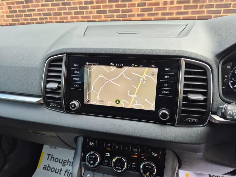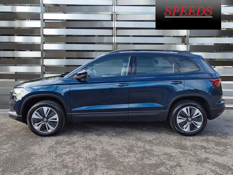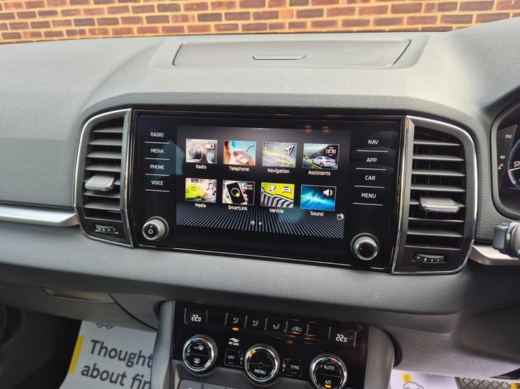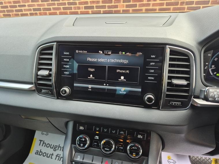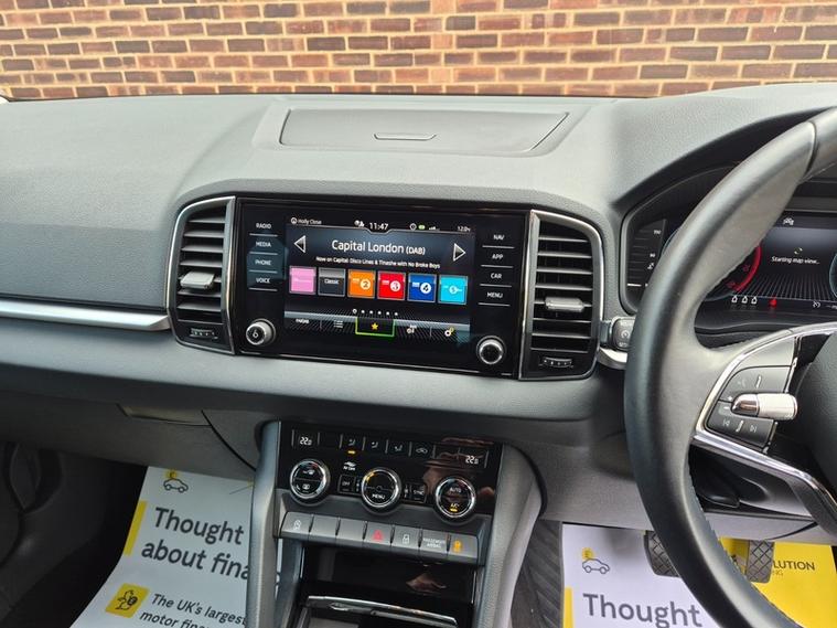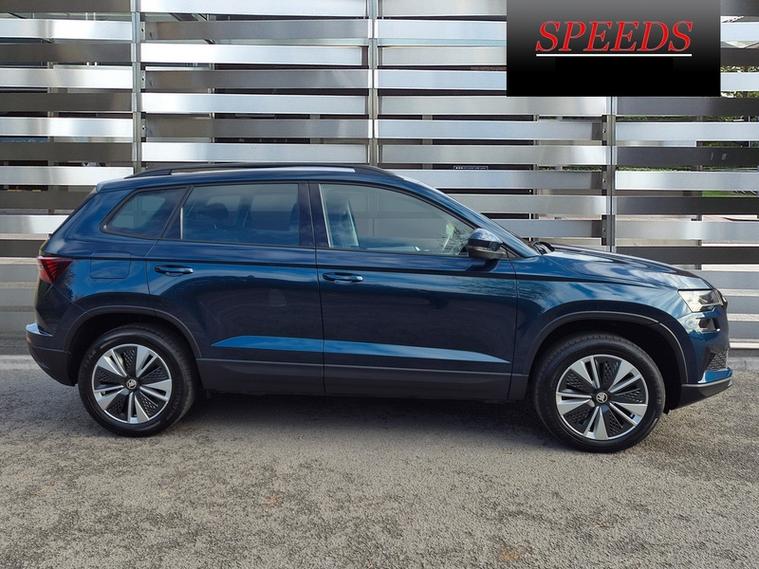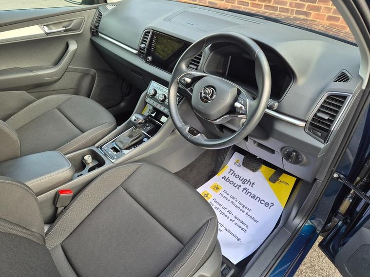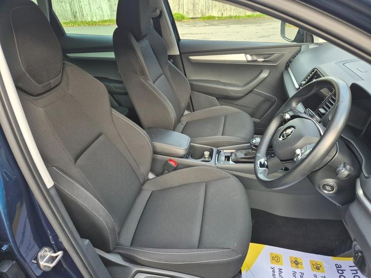 Skoda Karoq 1.5 TSI ACT SE Drive DSG Auto, SAT NAV-CAR PLAY-CLIMATE-PDC, This 2022 Skoda Karoq TSI SE Drive presents an exceptional opportunity with its remarkably low mileage of just 21, 000 miles. This Euro 6 compliant, 1.5 litre petrol model, finished in the SE Drive trim, offers a compelling blend of practicality and modern technology. It comes equipped with stylish 17 inch Scutus alloy wheels in anthracite grey with matt black aero covers, enhancing its visual appeal. Convenience is further assured with the Light and Rain Sensor package, which includes automatic headlight activation and an auto dimming rear view mirror, alongside rear parking sensors to aid manoeuvrability. Inside, you'll find the SmartLink system, providing seamless integration with Android Auto and Apple CarPlay, Cruse Control and dual zone climate control for personalised comfort. (CAT S)