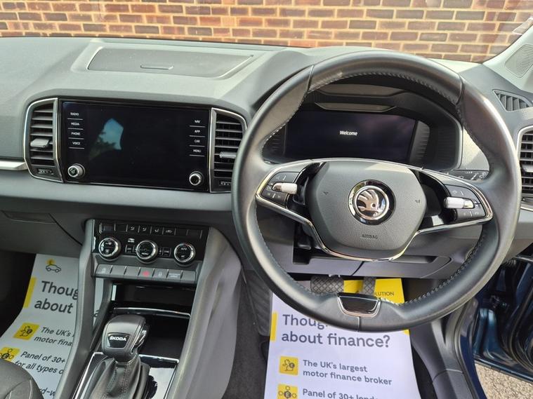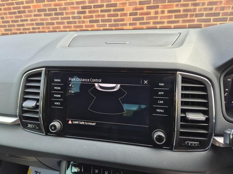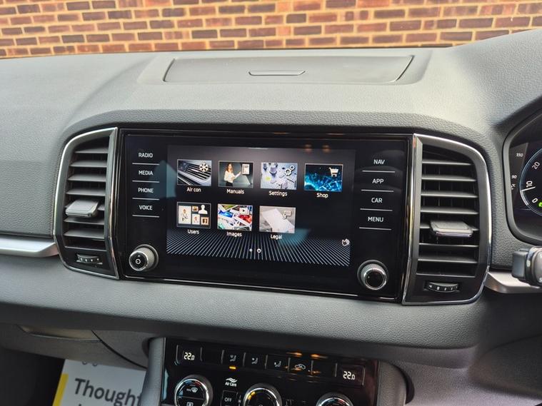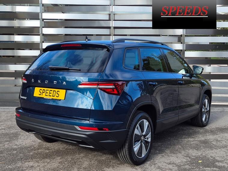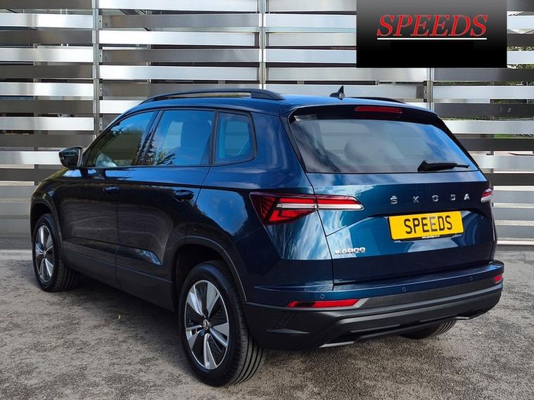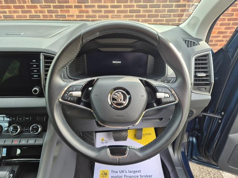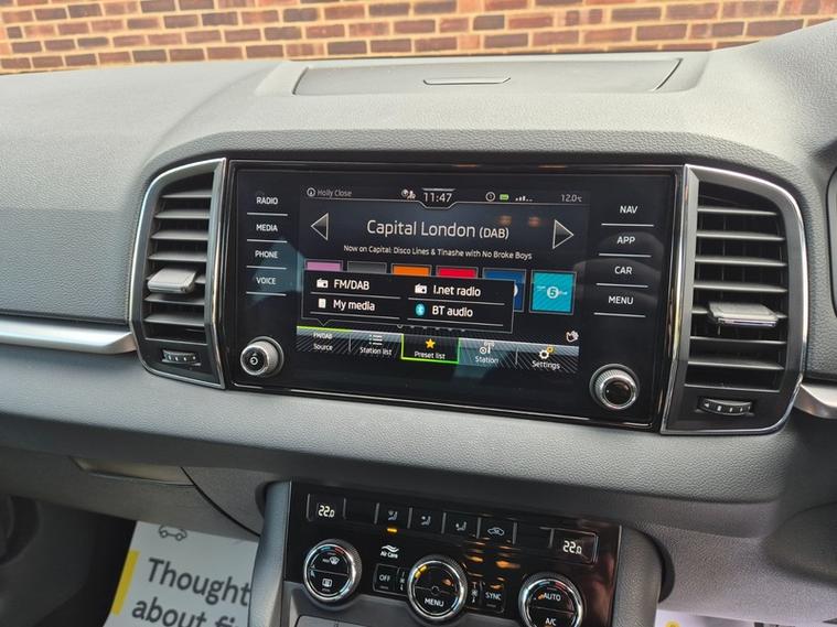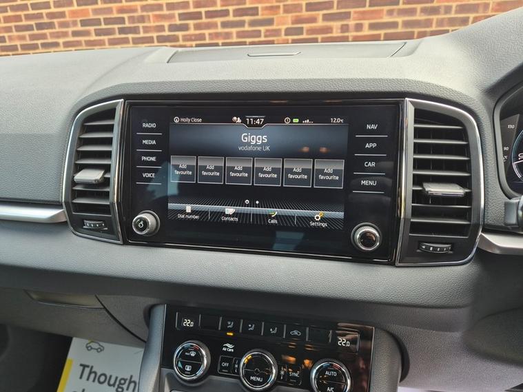 Skoda Karoq 1.5 TSI ACT SE Drive DSG Auto, SAT NAV-CAR PLAY-CLIMATE-PDC, This 2022 Skoda Karoq TSI SE Drive presents an exceptional opportunity with its remarkably low mileage of just 21, 000 miles. This Euro 6 compliant, 1.5 litre petrol model, finished in the SE Drive trim, offers a compelling blend of practicality and modern technology. It comes equipped with stylish 17 inch Scutus alloy wheels in anthracite grey with matt black aero covers, enhancing its visual appeal. Convenience is further assured with the Light and Rain Sensor package, which includes automatic headlight activation and an auto dimming rear view mirror, alongside rear parking sensors to aid manoeuvrability. Inside, you'll find the SmartLink system, providing seamless integration with Android Auto and Apple CarPlay, Cruse Control and dual zone climate control for personalised comfort. (CAT S)