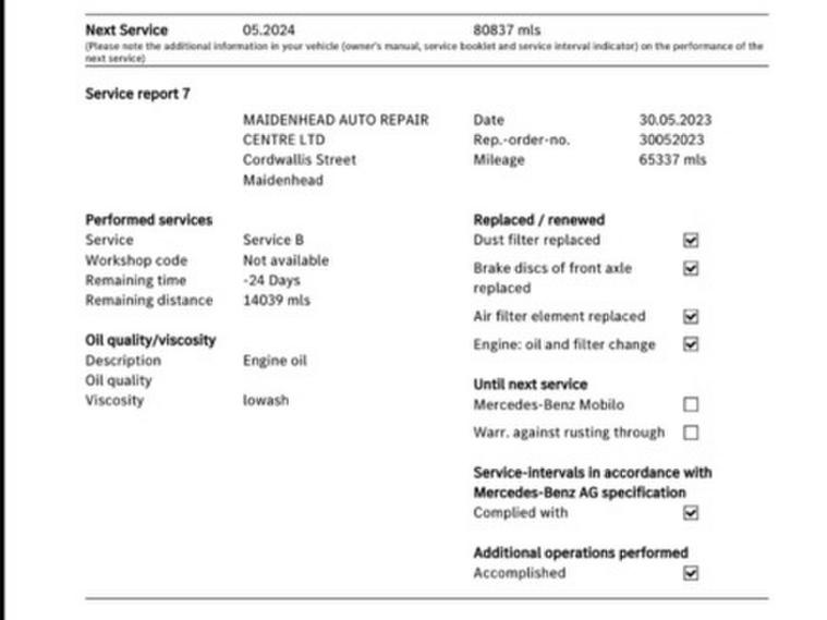 This car comes with 5 seats, Black, 2 owners, 17in Alloy Wheels - 5 Twin-Spoke Design, 7in Colour Display - High-Resolution, ABS - Anti-Lock Braking System, ASR - Acceleration Skid Control, ATTENTION Assist, Active Bonnet - Pedestrian Safety which Detects an Impact and Raises Bonnet, Active Park Assist with Parktronic, Adaptive Brake Lamps, Adaptive Brake System with Hold Function and Brake Drying Function, Agility Control Comfort Suspension - Lowered by 15mm, Airbags - Drivers Kneebag, Airbags - Dual Stage - Front Passenger, Airbags - Dual Stage - Side in Front Seats, Airbags - Dual-Stage - Driver, Airbags - Pelvisbag, Alarm System with Immobiliser and Interior Protection, Audio 20 Radio-CD, Automatic Child Seat Recognition Sensor, Automatic Climate Control - Two-Zone, Automatically Dimming Rear View Mirror, Bluetooth Interface for Hands-Free Telephone, Central Locking with Interior Switch, Centre Armrest - Front with Storage, Childproof Locks - Manually Operated for Rear Doors and Electrically Operated for Rear Power Windows, Collision Prevention Assist Plus, Courtesy Lights in Doors, Crash Sensor with Emergency Opening Function for Doors, Cruise Control with SPEEDTRONIC Variable Speed Limiter, Cup Holder in Centre Console x2, DAB Digital Radio Tuner, Dashboard Trim - Black, Daytime Running Lights - LED, Door Mirrors - Drivers Automatically Dimming, Door Mirrors - Electrically Adjustable-Folding-Heated, Door Sill Panels - Mercedes-Benz Lettering, Dynamic Select with a Choice of Driving Modes - Comfort - ECO - Sport - Sport Plus - Individual, ESP - Electronic Stability Programme, Electric Parking Brake, Electric Windows - 4 - With One-Touch Opening and Closing - including Obstruction Sensors, Electronic Key - Chrome Surround, First Aid Kit, Floor Mats - Black, Folding Box Beneath the Luggage Compartment Floor, Footwell Lights in Front, Glove Compartment - Illuminated, Headlights - High-Performance LED, Heated Front Seats, Heated Windscreen Washer System, ISOFIX Child Seat Attachment Points with Top Tether in Rear, Illuminated Door and Door Handle Recesses, Immobiliser, Instrument Cluster with Two Tube-Design Round Dials and 5.5in TFT Multi-Function Display, Interior Lighting Package, Luggage Net in Cargo Area, Media Interface, Mercedes Me Connect, Mirror Package, Outside Temperature Gauge, Parking Sensor - Front, Parking Sensor - Rear, Pollen Filter, Power Steering - Direct-Steering Speed Sensitive, Radiator Grille with Integrated Star - Two Louvres in Matt Iridium Silver with Chrome Trim, Radio Aerial Integrated into Rear Window, Rain Sensing Windscreen Wipers, Rear Lights - LED, Rear Reading Lights - LED, Rear Seat Belts Status Indicator, Remote Boot Release, Remote Central Locking, Reversing Camera, Roof Lining - Crystal Grey, SD Card Slot in Centre Console, Satellite Navigation - Garmin Map Pilot, Seat - Electrically Adjustable Driver, Seat - Electrically Adjustable Front Passenger, Seat Belts - Black, Seat Comfort Package - Driver and Front Passenger Seat, Seats - Cushion Depth Adjustment, Seats - Electro-Pneumatic 4-way Lumbar Support with On-seat Controls, Seats - Front Electrical Height Adjustment, Seats - Rear Split Folding 40-20-40, Seats - Sports, Service Indicator ASSYST, Speakers with FrontBass, Speed-Dependent Automatic Locking, Steering Column - Manually Adjustable for Height and Reach, Steering Wheel - 3-Spoke - Nappa Leather - Silver Chrome - Perforated Leather - Grip Area, Steering Wheel - Gear Shift Paddles, Steering Wheel - Multi-Function, Stowage Package, Sun Visors with Illuminated Vanity Mirrors, TIREFIT with Tyre Inflation Compressor, Tinted Glass All Round - Green, Top Surround of Side Windows in Polished Aluminium, Touchpad, Trim - High-Gloss Black with Aluminium Door Trims, Trip Computer, Tyre Pressure Monitoring System, USB Ports in Centre Console x2, Warning Triangle, Windowbags for Driver-Front Passenger and Rear Passengers, eCall - Emergency Call System,