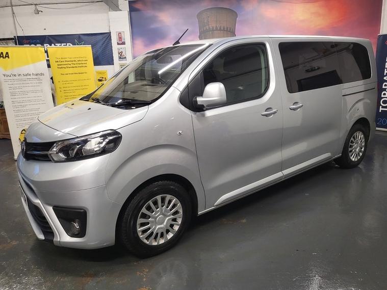 Inside, the Proace Verso Shuttle offers seating for up to nine passengers in a flexible 3-3-3 layout, with wide-opening doors providing easy access. The seats are supportive and can be folded or removed to create extra luggage space when needed ? offering up to 2, 381 litres of load capacity with the rear rows down. Standard features include air conditioning, cruise control, electric front windows and mirrors, a leather-trimmed multifunction steering wheel, DAB radio, Bluetooth connectivity, USB input and a 7-inch touchscreen infotainment system (on later models) with smartphone integration.On the road, the Proace Verso D-4D delivers smooth and refined performance, with excellent torque for effortless acceleration, even when fully loaded. The light steering and tight turning circle make it easy to handle in town, while its comfortable suspension ensures a relaxed ride for all occupants.Safety is a top priority, with multiple airbags, ABS, traction control, electronic stability control, hill-start assist, ISOFIX child seat mounts, tyre pressure monitoring and Toyota?s robust build quality. Many models also include lane departure warning and traffic sign recognition.Overall, the 2018 Toyota Proace Verso Shuttle L1 D-4D is a capable, comfortable and economical MPV that combines Toyota?s renowned reliability with the flexibility and space needed for both private and commercial use. With its smooth diesel engine, nine-seat capacity and practical design, it?s the perfect choice for families, businesses or transport services seeking dependable and efficient motoring. The Toyota Proace Verso Shuttle will come with Bookpack, Full service history, Long MOT until September 2026, 6 months warranty and 12 months breakdown cover. The Toyota Proace has a great spec that includes Satellite Navigation, 9 Seats, ABS brakes, Air conditioning, Alloy wheels, Central locking, Climate control, Electric windows, Power assisted steering, Automatic rear view mirror dimming, Bluetooth, Brake assist, Cruise control, Cup holders, Daytime running lights, Electric mirrors ESP, Folding rear seats, Front and side impact airbags, Front fog lights, Heated door mirrors, ISOFix anchor points, Parking sensors, Rain sensor, Start stop system, Steering wheel controls, Traction control and much more. For further information please see that spec list.