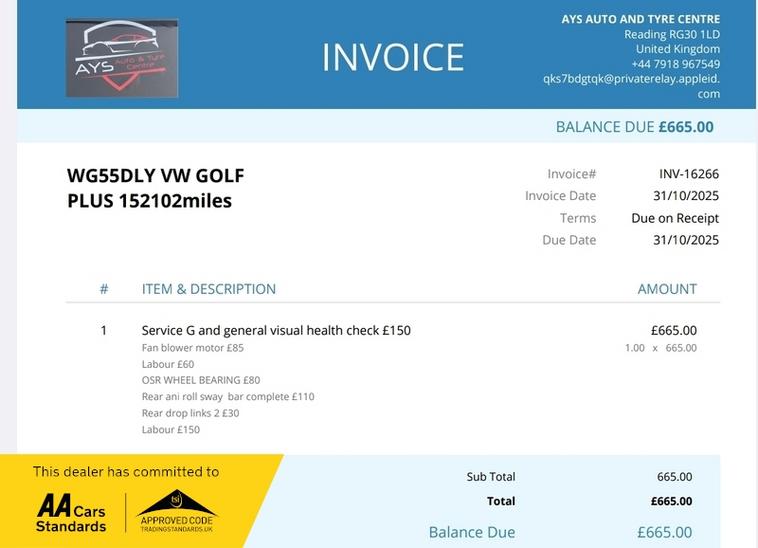Spent 665£ at the last service and MOT repairs(receipt attached).