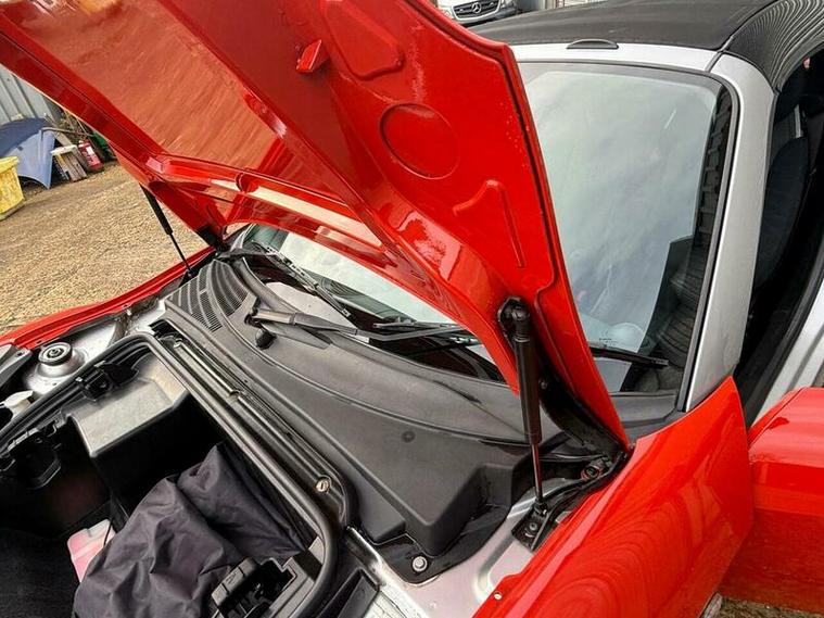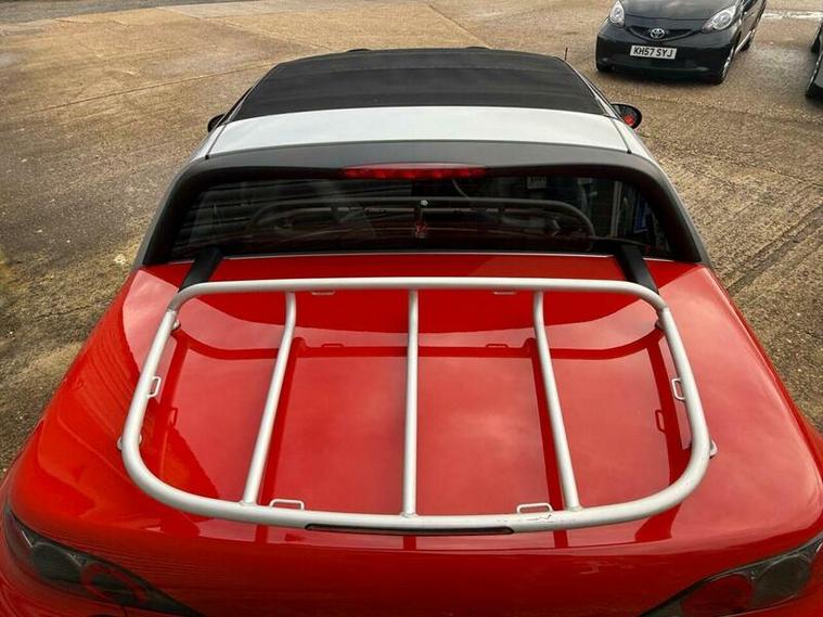 FRESHLY SERVICED BEFORE SALE, SPICE RED PANELS, (WITH ABSOLUTELY NO SIGNS OF AND LAQUER PEEL THAT CAN AFFECT SPICE RED CARS), WITH THE OPTIONAL SILVER TRIDION CHASSIS, RARE FACTORY BOOT RACK WITH HIGH LEVEL BRAKE LIGHT, 3 SPOKE PADDLE SHIFT STEERING WHEEL, 16 INCH 'TRACKLINE ' MULTISPOKE ALLOYS, ( THESE WERE STANDARD ON THE ROADSTER COUPES AND WIDER THAN THE STANDARD ROADSTER WHEELS), FOLDING ELECTRIC FABRIC ROOF, ( WITH NO ISSUES IN USE OR WITH SHRINKAGE), AND POD CLOCKS AND TRIP COMPUTER.