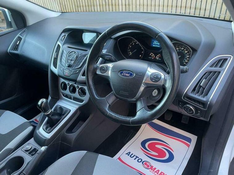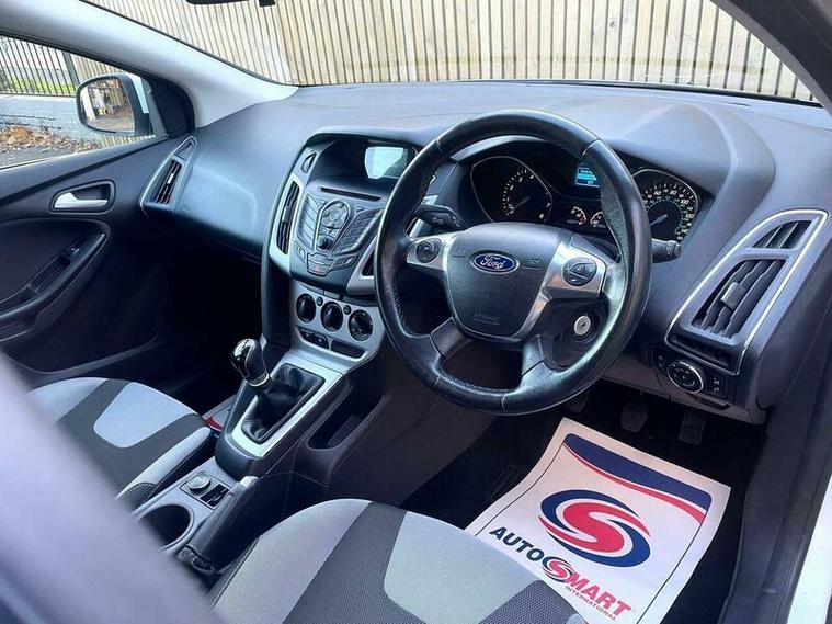 This 2013 Ford Focus Zetec presents a compelling proposition with its remarkably low mileage for its age, having covered just 82, 000 miles. The Zetec trim level ensures a comfortable and convenient driving experience, enhanced by practical features such as rear parking sensors for easier manoeuvring and a Bluetooth handsfree system with voice control, allowing you to stay connected safely. BEAUTIFUL condition finished in metallic white with excellent charcoal cloth interior. MOT due 03/11/2026 with no advisories. Freshly serviced at 81255 miles. Additionally this vehicle comes with 2 keys and 2 previous owners. Our Company does not receive any commission from the sale of our vehicles. Excellent specification including;