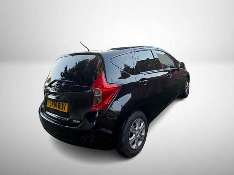Finished in a gloss black paintwork, this Note looks sleek and modern with its sharp body lines. The paint has a deep, mirror-like shine, and the interior is immaculate, with clean fabric seats, spotless carpets, and a fresh cabin.