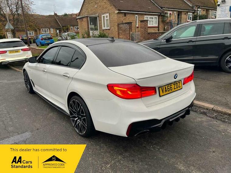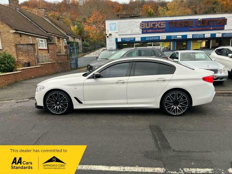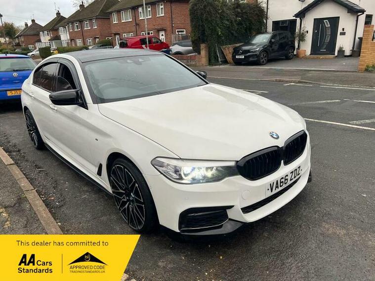 This 2017 BMW 5 Series 520d M Sport offers an exceptional blend of performance and efficiency, boasting an impressive 60 mpg fuel economy. This Four Wheel Drive model, finished in the sporty M Sport trim, is powered by a 2.0L Diesel Engine and meets Euro 6 emissions standards. It comes equipped with a Comfort Package, which includes Keyless Entry, Parking Assistance with a Rear Camera, and Seats with Memory function. Further enhancing the driving experience is the Loudspeaker System from Harman Kardon, providing a premium branded sound. The Comfort Access with Smart Opener also features Keyless Entry, and the Seat Adjustment for the front electric seats includes Driver Memory. For seamless connectivity, it offers Enhanced Bluetooth Telephone Preparation with Wireless Charging.