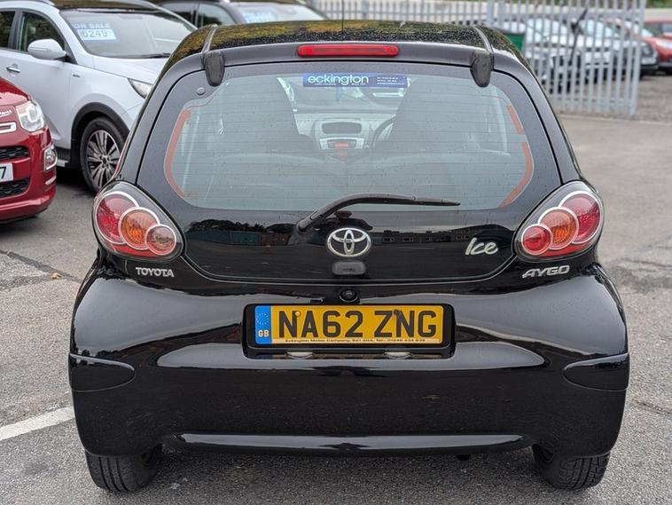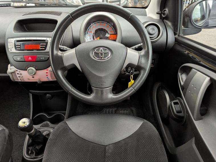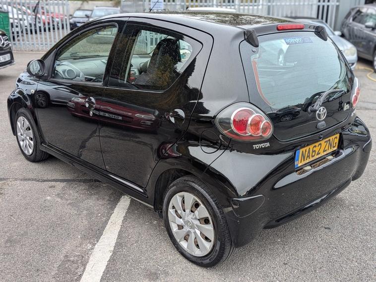 She is a December 2012 on a '62' Plate TOYOTA AYGO 1.0 VVT-I ICE 5 Door 5 Speed Hatchback in Metallic BLACK.