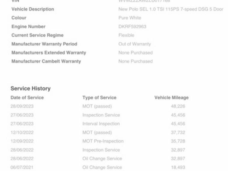 This car comes with 5 seats, White, 2 owners, 16in Alloy Wheels - Las Minas, 3 Rear Three-Point Seat Belts with Tensioners on Outer Seats, ABS - Anti-Lock Braking System with HBA - Hydraulic Brake Assist, Alarm with Interior Protection with Deactivation via Infotainment System, Ambient Lighting in Front Footwell and Light Stripes Below Trim in Front and Rear Doors and Dashboard, Armrest - Front Centre with Storage Compartment, Automatic Post-Collision Braking System, Bag Hooks in the Luggage Compartment x2, Black Radiator Grille with Chrome Trim, Black Radiator Grille with Chrome Trimmed Louvres, Body Coloured Bumpers and Side Sills, Body Coloured Door Handles and Mirrors with Integrated Indicators, Car Net - Guide and Inform (3 Year Subscription From New), Car-Net App Connect, Carpet Mats - Front and Rear, Centre Console with Open Storage Compartment, Chrome Effect Handbrake Grip Button, Chrome Plated Air Vent Surrounds, Chrome Plated Electric Mirror Adjustment Switch Surround, Chrome Plated Electric Window Button Surrounds, Chrome Plated Instrument Surrounds, Chrome Trimmed Strip on Lower Bumper, Climate Control - 2-Zone, Coloured Dashpad - Deep Iron, Composition Media System, Cup Holders - Front x2 and 12v Socket with Cover, Curtain Airbag System for Front and Rear Passengers including Side Airbags in the Front, DataPlug, Decorative Inserts - Deep Iron, Discover Navigation Infotainment System, Door Mirrors - Electrically Adjustable and Heated, Driver Alert System, Drivers and Front Passengers Airbags with Front Passenger Airbag Deactivation Switch, Drivers and Front Passengers Safety Optimised Head Restraints, Drivers and Front Passengers Sun Visors with Illuminated Vanity Mirrors, Dust and Pollen Filter, ESC - Electronic Stability Control, Electric Windows - Front and Rear, Electronic Engine Immobiliser, Front Assist - Radar Sensor Controlled Distance Monitoring System - City Emergency Braking System and Predictive Pedestrian Protection, Front Fog Lights with Static Cornering Function, Front Seat Back Storage Pockets, Front Windscreen Washers and Wipers with 4 Speeds including Interval Delay, Gear Lever Gaiter in Black Trim Surround, Glovebox, Halogen Clear Headlights Range Adjustable with Separate Daytime Running Lights including Automatic Headlights On, Heated Rear Windscreen - Automatically Switches Off, Height and Reach Adjustable Steering Wheel, Height-Adjustable Front Three-Point Seat Belts with Tensioners, High Level 3rd Brake Light, Hill Hold Control, ISOFIX Child Seat Preparation, Instrument Lighting - White Adjustable Panel Illumination, Interior Lighting - Front and Rear with Interior Delay and Dimming Function, Interior Lighting with Delayed Switch Off, License Plate with LED Illumination, Light and Sight Pack, Lights on Warning Buzzer, Luggage Compartment - Variable Load Floor, Luggage Compartment Cover - Removable, Luggage Compartment Light, Manual Coming-Automatic Leaving Home Lighting Function, Multifunction Computer Plus, Multifunction Leather Steering Wheel Including Leather Trimmed Gear Knob and Handbrake Grip, Parking Sensors - Front and Rear, Power Assisted Steering - Speed Sensitive, Premium USB Cable, Rain Sensor and Automatic Dimming Interior Rear-View Mirror, Rear Windscreen Washer and Wiper with Interval Delay - Reverse Activated, Remote Central Locking with 2 Remote Folding Keys, Seats - Height Adjustment - Front, Spare Wheel - Space Saver, Speedo and Rev Counter - Electronic Odometer - Trip - Service Interval Display - Digital Clock and Fuel Gauge, Split Folding Rear Backrests 60-40, Storage Compartment Under Front Seats, Storage Compartment in Front and Rear Doors, Three Rear Head Restraints, Tinted Glass - Heat Insulating Green, Tool Kit and Jack, Two-Tone Horn, Tyre Pressure Monitoring System, Warning Buzzer and Light for Front and Rear Seat Belts if Unfastened,