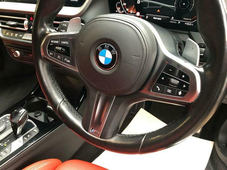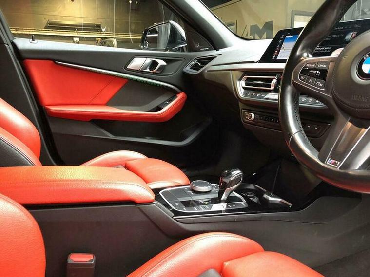 This 2021 BMW 1 Series M135i offers an exhilarating driving experience, boasting a powerful 2.0 litre petrol engine and a sophisticated four wheel drive system for exceptional grip and performance. As a Euro 6 compliant vehicle, it meets stringent emission standards. This particular model is enhanced with the M135i Pro Pack, which includes a premium branded sound system from Harman Kardon, ensuring your journeys are accompanied by superb audio quality. The interior is appointed with striking perforated Dakota leather in Magma Red with Grey highlights, complemented by stylish 19 inch M Double Spoke alloy wheels in a bi-colour finish. Connectivity is seamless with Bluetooth audio streaming for compatible devices.
