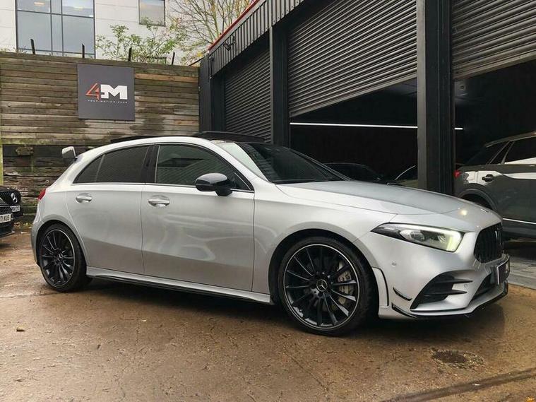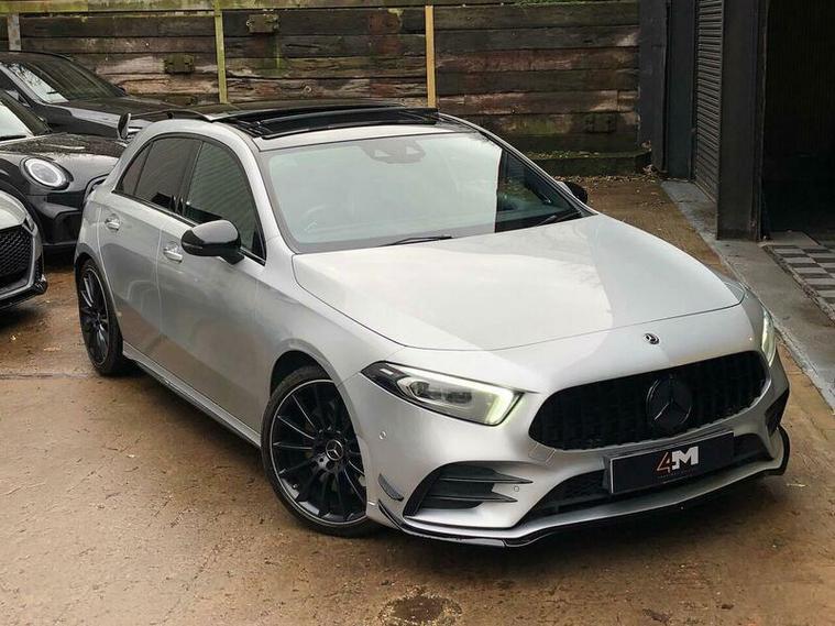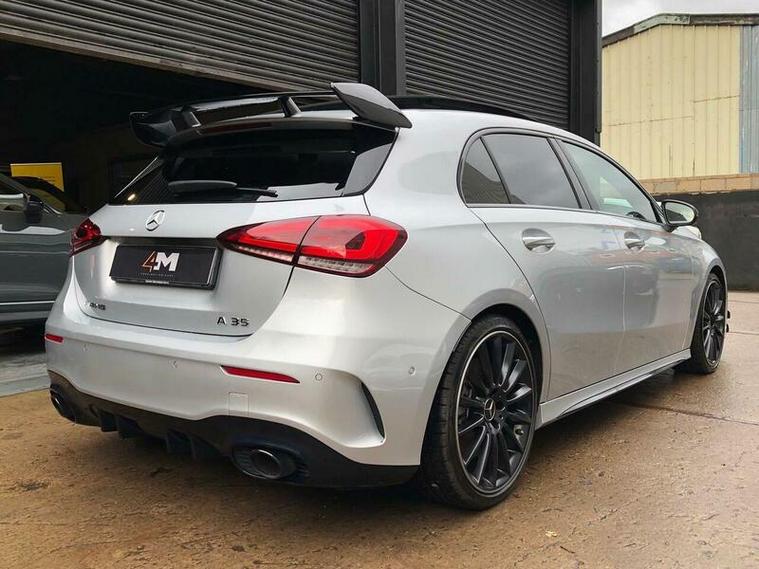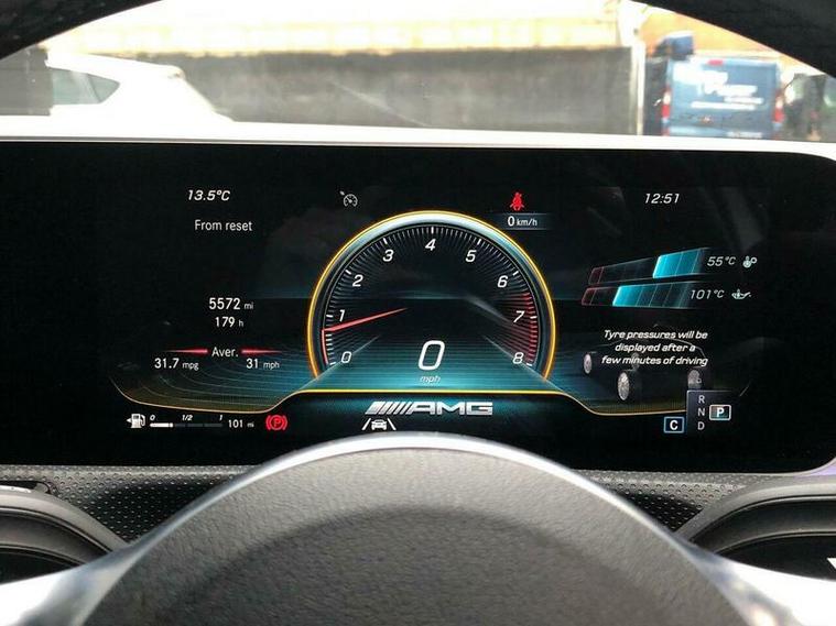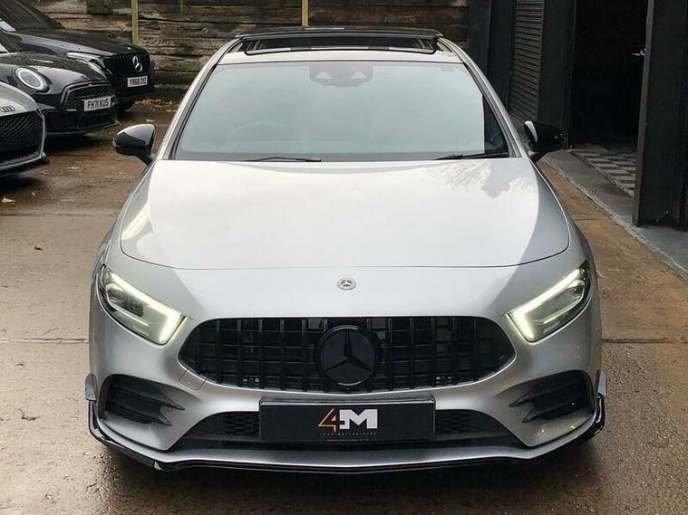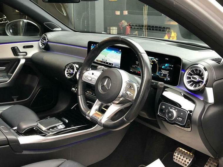 This 2019 Mercedes-Benz A35 AMG presents an exceptional opportunity with its remarkably low mileage of just 31, 000 miles. As a Euro 6 compliant model, this four wheel drive A Class boasts a powerful 2.0L petrol engine, delivering exhilarating performance with a 0-62mph time of only 4.7 seconds. The vehicle history check is clear, offering peace of mind. This AMG trim features the desirable AMG Style Package and the Premium Plus Package, which includes a branded sound system, LED high performance headlamps with integrated daytime running lights, a panoramic sunroof, keyless entry, and heated front seats with memory function.