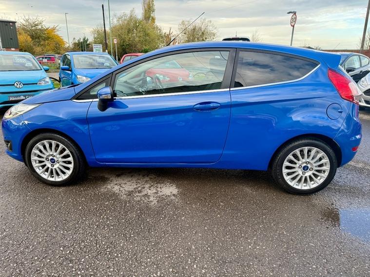 ABSOLUTE CARS have this 3 Door Ford Fiesta 1.0 Titanium Euro 5 (s/s) in metallic blue with Alloys. An Ideal First Car + Only £20 a Year Tax ! Call in for a test drive, finance arranged & part exchange considered., 3 months warranty, Next MOT due 18/06/2026, Last serviced on 30/10/2025 at 77, 568 miles, Full service history, Grey interior, 5 seats, Metallic Blue, 4 owners, 12V Power Socket - Front, 16in Alloy Wheels - 15 Spoke, 4.2in TFT Display, ABS - Anti-lock Braking System, Aesthetic Lighting Package, Airbags - Curtain, Airbags - Driver Side Knee, Airbags - Front Passenger, Airbags - Head and Thorax, Airbags - Passenger Deactivation, Armrest - Centre Console, Automatic Dimming Rear View Mirror, Automatic Rain Sensing Wipers, Brake Warning Lights - Automatic Flashing of Brake Lights Under Heavy Braking, Bumpers - Front and Rear - Body Colour, Centre Console - with Trinket Tray - Two Cup Holders, Chrome Belt Line Finisher, Courtesy Light - Overhead with Theatre-Style Dimming, Courtesy Lights with Map Reading Lights, Cruise Control, Door Handles - Body Colour, Drivers Airbag, EATC - Electronic Automatic Temperature Control - Climate Control, EBA - Emergency Brake Assist, EBD - Electronic Brakeforce Distribution, ECOmode, EPAS - Electric Power Assisted Steering, ESP - Electronic Stability Programme, Electric Windows - Front with One Touch Lowering Drivers, Emergency Assistance, Emergency Brake Warning - Automatic Hazard Warning Lights, Floor Mats - Front and Rear - Velour, Ford AM-FM CD Audio System, Ford Easy Fuel Capless Refuelling System with Misfuel Inhibitor, Front Fog Lights - Chrome Bezel Rings, Front Lower Grille - Chrome Surround, Front Lower Grille Insert and Surround - Black, Front Seatback Map Pockets - Driver and Passenger, Front Upper Grille - Chrome Finish Surround, Front Upper Grille Insert - Chrome bars, Gear Knob - Leather, Gearshift Indicator Light, Gearshift Knob - Leather-Trimmed with Chrome Finish Bezel, Glovebox - Illuminated, Handbrake Release Knob - Chrome, Head Restraints - 2-way Adjustment, Head Restraints - Rear 2-Way Adjustment, Headlights - Automatic, Headlights - Courtesy Delay, Headlights - Follow Me Home, Headlights - Halogen Projector with Silver Bezel, Headliner - Woven, Heated Front Windscreen, High-Mounted Rear Brake Light, Hill Start Assist, IPS - Intelligent Protection System, Interior Door Lever - Chrome Finish, LED Ambient Courtesy Lighting, LED Daytime Running Lights, Leather-Trimmed Handbrake, Loadspace Compartment Light, Loadspace Floor Carpet, Locking Wheel Nuts, MyKey, Passenger Airbag Deactivation Indicator, Passengers seat manual 2-way adjustment, Perimeter Anti Theft Alarm, Pollen Filter, Power Fold Door Mirrors, Rake and Reach Steering Adjustable, Rear Courtesy Lights, Rear Privacy Glass, Rear Seats Back - Carpet, Rear Spoiler - Body Colour, Remote Central Locking, Removable Package Tray, Seats - 60-40 Split Folding Back and Fixed Cushion, Seats - Drivers 4-Way Adjustment, Seats - Drivers Lumbar Support, Seats - Front Comfort Style, Seats - ISOFIX Mounting Brackets for Child Seats, Second Remote Ignition Key, Sony DAB Digital Radio, Speakers - x8, Steering Wheel - 3-Spoke - Leather Trimmed with Bezel, Steering Wheel - Multifunction, Stowage Pockets - Driver and Front Passenger Seatbacks, Suspension - Front Stabiliser Bar, Tailgate Handle - Body Colour with Chrome Finisher, Trip Computer, Tyre Inflator Kit, USB and AUX Connection for External Music Devices, AS WE ARE AN AA CARS DEALER THIS VEHICLE COMES WITH 12 MONTHS AA BREAKDOWN COVER.