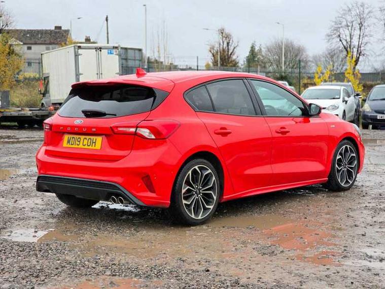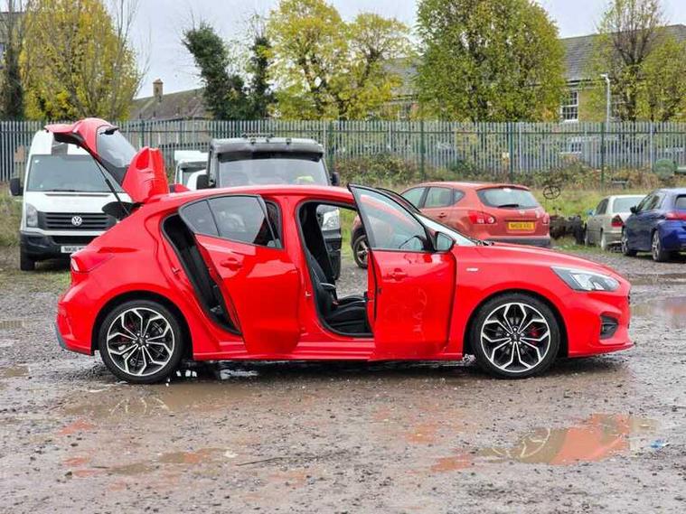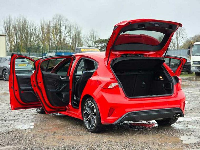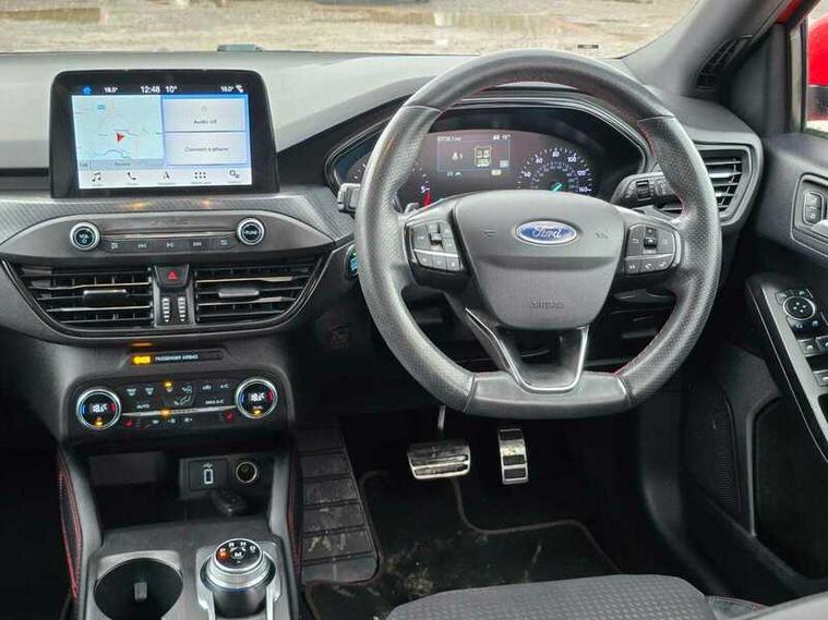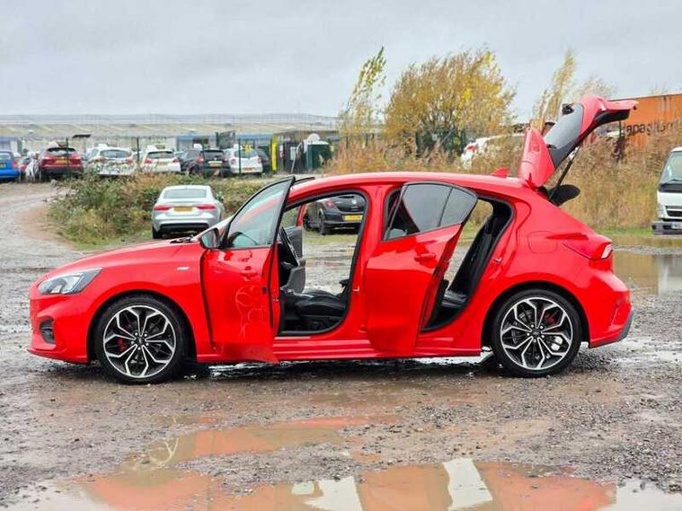 This car comes with 5 seats, Red, 2 owners, 18in Alloy Wheels - 5x2 Spoke - ST-Line Matt Black Machined Black, 4.2in TFT Instrument Cluster Screen, 6-Way Power Adjustment Driver Seat, 8in Touchscreen Colour Display, Airbags - Driver and Front Passenger, Airbags - Front Side Impact, Airbags - Front and Rear Side Curtain, Alloy Finish Pedals, Anti-Lock Braking System - ABS with Electronic Brake Force Distribution - EBD, Automatic Dimming Rear View Mirror, Body Colour Bumpers, Centre Console with Armrest, Courtesy Light - Front and Rear Passengers - Overhead Halogen and Load Compartment, Cruise Control with Speed Limiter, DEATC - Dual-Zone Electronic Automatic Temperature Control, Door Handles - Body Colour, Drivers Seat Lumbar Adjust, EPAS - Electric Power Assisted Steering, Electric Parking Brake, Emergency Brake Warning, Enhanced Electronic Stability Control - ESC with Traction Control - Emergency Brake Assist - EBA - Hill Start Assist - HSA, Ford Easy Fuel - Capless Refuelling System, Ford Eco Mode - Driver Information System, Ford SYNC3 DAB Navigation System, FordPass Connect, Front Passenger Airbag Deactivation Switch, Front Seat - Drivers Manual Height and Fore-Aft Adjustment, Front Seat - Passengers Manual Fore-Aft Adjustment, Front Seats - Sports Style, Front Suspension - Independent with MacPherson Struts and Anti-Roll Bar, Front and Rear Floor Mats with Red Stitching, Front and Rear Seatbelt Minder, Headlights - Halogen, Headliner - Black Woven, Heated Front Seats, IPS - Intelligent Protection System, Intelligent Speed Assistance, LED Daytime Running Lights, LED Front Fog Lights with Cornering Function, Lane Keeping Aid with Lane Departure Warning, Leather-Trimmed Handbrake, Locking Wheel Nuts, MyKey, Paddle Shift, Parking Sensor - Front and Rear, Passenger Seat Manual Height and Lumbar Adjust, Polished Twin Tailpipe, Post Collision Braking, Power Folding Door Mirrors with Puddle Lights, Pre-Collision Assist with Autonomous Emergency Braking and Pedestrian-Cyclist Detection, Pre-Collision Assist with Pedestrian Detection, Quickclear Heated Windscreen, Rain Sensitive Windshield Wipers, Rear Centre Headrest, Rear Privacy Glass, Rear Spoiler - Body Colour - Large, Red Brake Calipers, Remote Central Locking and Engine Immobiliser, Rotary Gear Shift Dial, ST Line Stainless Steel Scuff Plates, Seats - ISOFIX Mounting Provision for Child Seats, Selectable Drive Mode, Soft Console Knee Pads with Red Stitching, Spare Wheel - Mini Steel, Sports Tuned Suspension, Steering Column - Rake and Reach Adjustment, Steering Wheel - 3-Spoke Flat Bottom - Leather Trimmed with Red Stitching, Thatcham Category 1 Alarm, Trip Computer, Tyre Pressure Monitoring System, Unique ST-Line Upper and Lower Grille and Full Bodystyling Kit and ST-Line Wing Badges, Windows - Electrically Operated Front and Rear with One Touch Opening and Closing, Wipers - Standard with 6 Speed Interval Settings,