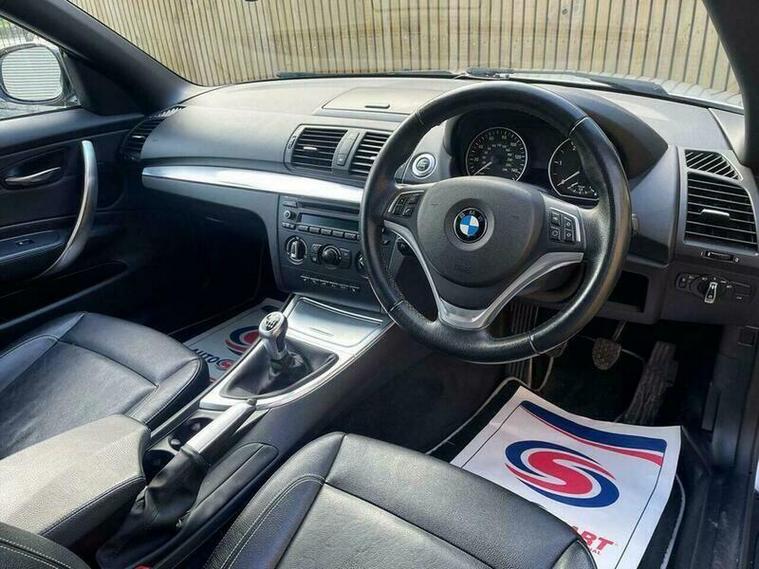 BEAUTIFUL BMW 1 Series 2.0 118d Exclusive Edition Euro 5 (s/s) 2dr finished in metallic silver with excellent black leather interior. MOT due 09/08/2026 with no advisories. Part service history (5 Stamps) and freshly serviced at 73797 miles. Additionally this vehicle has just had a new battery fitted and also comes with 2 keys. Our Company does not receive any commission from the sale of our vehicles. Excellent specification including;