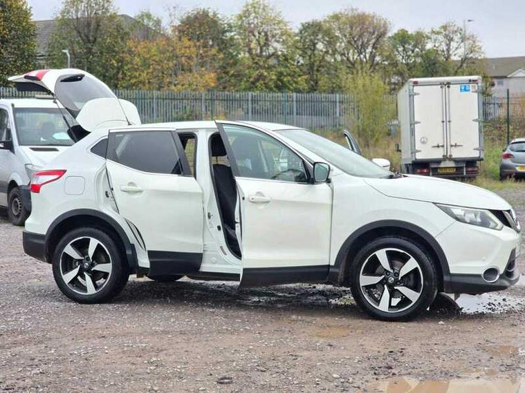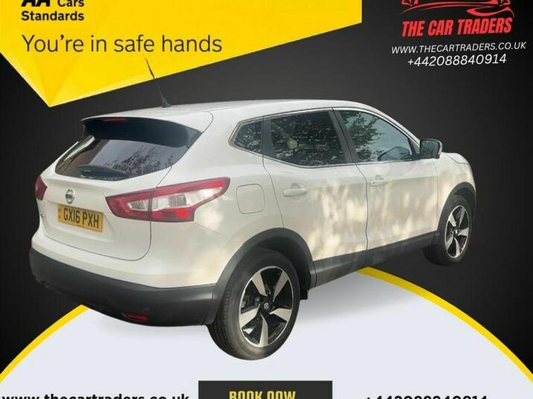 This car comes with 5 seats, White, 4 owners, 18in Alloy Wheels - Diamond Cut, 3 x 3-Point Rear Seatbelts with ELR, 5in High Definition Full Colour TFT Screen Combimeter, 6 Speakers, 60-40 Split Rear Folding Seats, AUX Socket for MP3 Player, Alarm, Automatic Folding Door Mirrors, Automatic Lights and Wipers, Black Honeycomb Front Grille, Bluetooth, Body-coloured Bumpers - Handles and Mirrors, CD Radio, Chrome Glass Surround, Cruise Control with Speed Limiter, Drive Computer, Driver Seat Height Adjustment, Driver-Passenger-Side and Curtain Airbags, Drivers Side One-touch and Anti-trap Window, Dual Zone Climate Control Air Conditioning, ESP ABS EBD and Brake Assist, Electric Speed-Sensitive Power Steering, Front Centre Console and Armrest, Front Fog Lamps with Chrome Ring, Front Seat Belt Height Adjustment, Front Seat Belts with Load Limiter and Pretensioners, Front and Rear Electric Windows, Head Restraints - 3 Rear, Height Adjustable Front Head Restraints, Hill Start Assist, ISOFIX Child Seat Anchoring Points, Immobiliser, Intelligent Key, Interior Ambient Lighting, LED Signature Daytime Running Lights, Leather Steering Wheel, Luggage Board System, Nissan Chassis Controls, Premium Pack, Puncture Repair Kit, Push Start-Stop Button, Rear Door Child Locks, Rear Privacy Glass, Rear Seat Armrest with 2 Cupholders, Remote Audio Control, Seats - Drivers Lumbar Support, Seats - Passengers Height Adjustment, Selectable Steering - Normal or Sport, Smart Vision Pack, TPMS - Tyre Pressure Monitoring System, Tech Pack, Tilt and Telescopic Adjustable Steering Wheel, e-PKB - Electric Parking Brake,