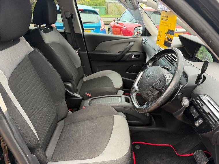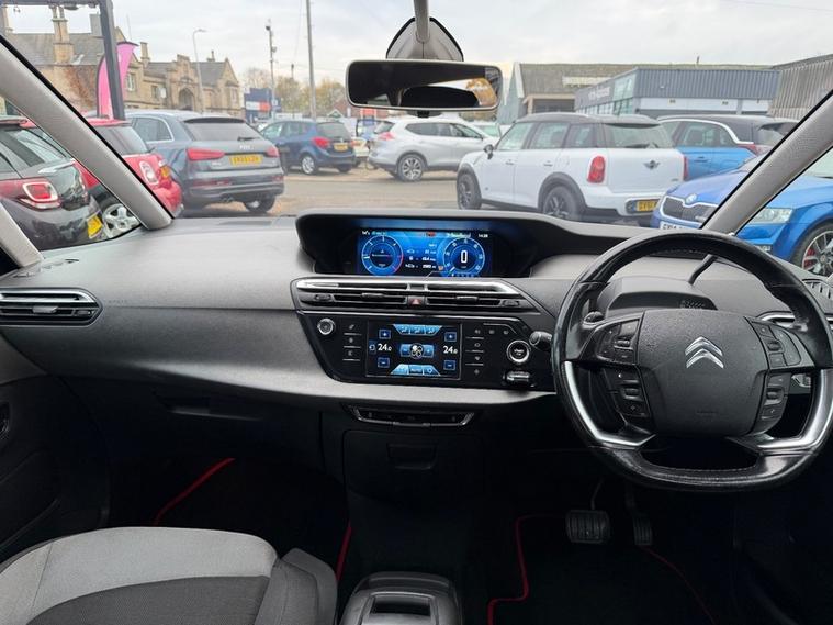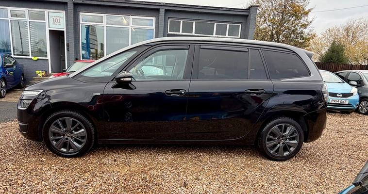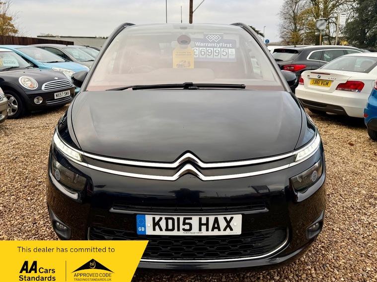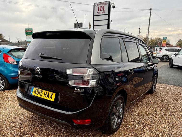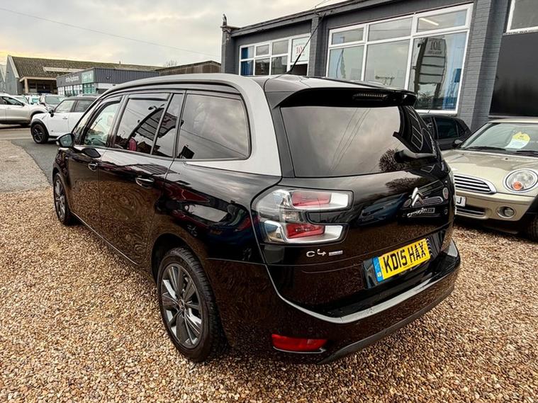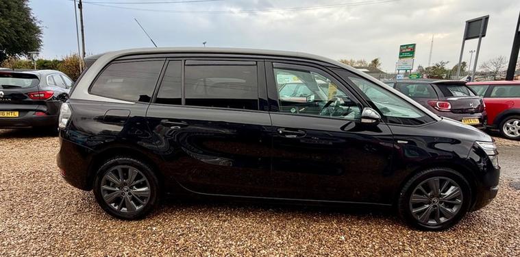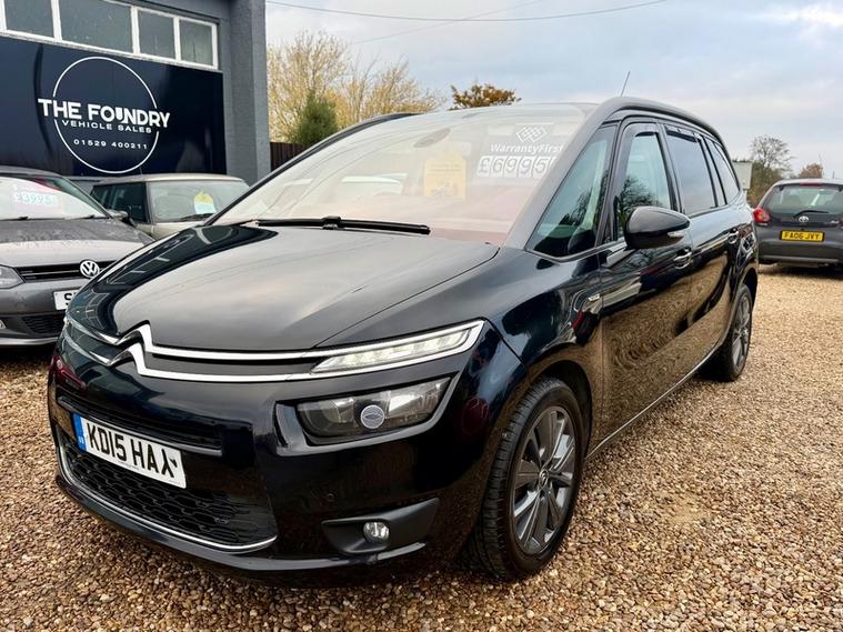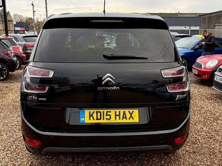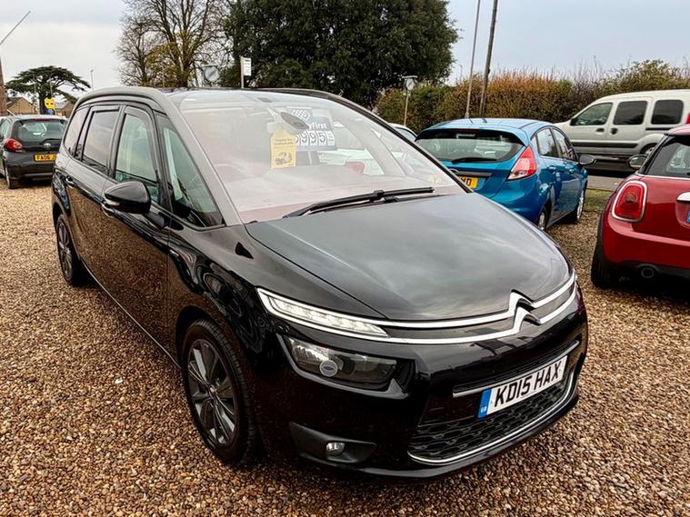 A fantastic example of a 2015 Citroen C4 Grand Picasso Exclusive BlueHDi with 7-seats a 1.6L diesel engine, featuring an automatic 6-speed gearbox, and a high-level 'Exclusive' trim which includes features like , 12-inch infomation display along with premium comfort seats, dual-zone automatic air conditioning, and advanced safety features including blind spot monitoring and a camera.