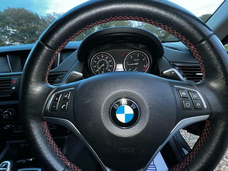 This 2013 BMW X1 20d Sport offers a compelling blend of style and performance, featuring a sophisticated Four Wheel Drive system and a powerful 2.0L Diesel Engine. Finished in a striking Sport trim, this model boasts 18in Light Blade Spoke alloy wheels and practical Matt Aluminium roof rails. Inside, you'll find luxurious Nevada Leather upholstery in Black with distinctive grey and red piping, complemented by heated front seats for added comfort. The Enhanced Bluetooth Telephone Preparation with USB Audio Interface ensures seamless connectivity on the go.