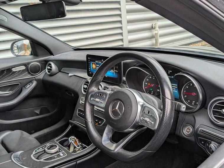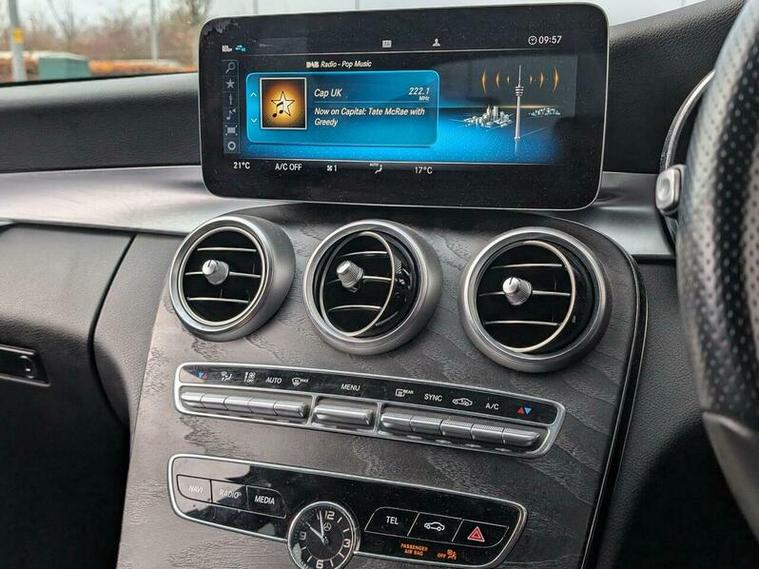 This 2018 Mercedes Benz C Class C300 AMG Line presents a remarkable opportunity with its exceptionally low mileage of just 49, 000 miles for its age. Finished in the striking AMG Line trim, this 2.0 litre petrol model boasts a Euro 6 emission class and features a sophisticated black leather interior. It rides on impressive 19 inch alloy wheels, painted in a high gloss black, and benefits from THERMATIC automatic climate control for dual zone comfort.