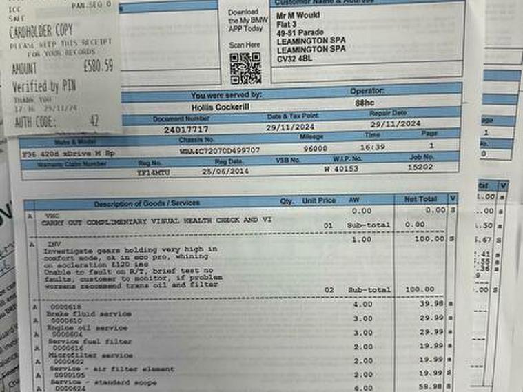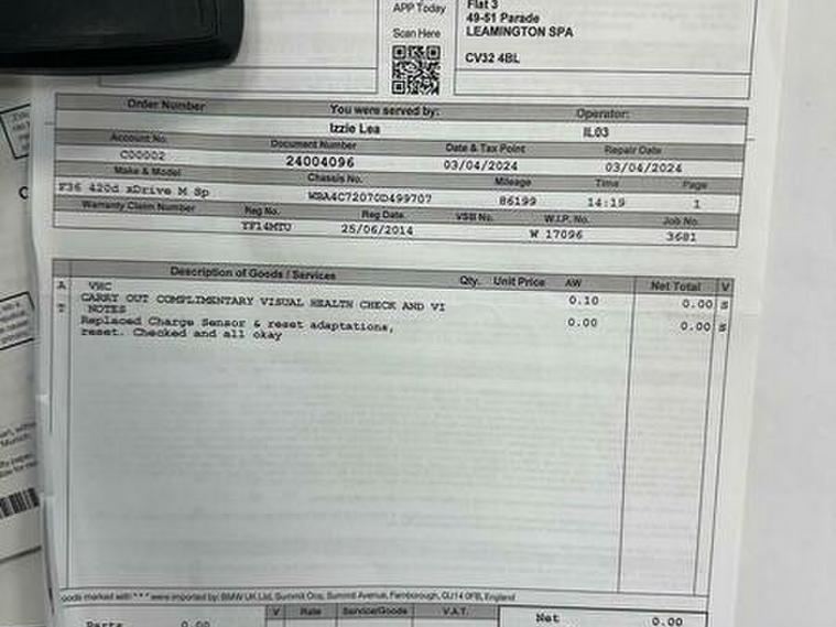 Basford Motors LTD delighted to offer this stunning BMW 4 Series Gran Coupe 2.0 420d M Sport Auto xDrive Euro 6 (s/s) 5dr with NICE SPEC, This 2014 BMW 4 Series Gran Coupe 420d M Sport boasts a full service history 9 BMW Services and 3 independent Garage , with its last service completed on 08 November 2025 at 116098 miles, ensuring excellent provenance. This four wheel drive model is powered by a 2.0L diesel engine and meets Euro 6 emissions standards. It comes with a 3 month warranty and a 12 month MOT provided on purchase. Notable features include 19in M Double Spoke Style 442M alloy wheels, a reversing assist camera for easier parking, and front electric seat adjustment with driver memory. The interior also offers a front armrest with sliding adjustment and convenient 40-20-40 split folding rear seats, alongside generous boot space.