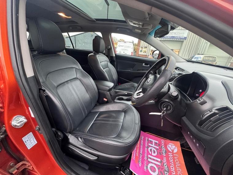 2014 (63) Kia Sportage 2.0 CRDi KX-3 5dr [Sat Nav] in Orange. Rare 4WD Model with diff lock making this example capable in all seasons. Runs and Drives very well, pulls strong in all gears and is overall a highly smooth and comfortable drive. Great colour presented in Techno Orange giving this practical SUV a striking look. Great fuel economy for its size, 47+ MPG combined and 52+ MPG on a run. KX-3 specification with Heated front and rear leather seats, Navigation, Reverse camera, Bluetooth connectivity, 18 inch alloy wheels, Cruise control with hill descent, Differential lock, Dual climate control, Tow bar with twin electrics, Panoramic roof, Automatic lights/wipers, Roof bars and more. 12 Months MOT, Service and 6 Months Warranty with the sale. Good condition both inside and out, this is a car we previously supplied around 2 years ago and we have just took it back in part ex, the customer reported it to have been a great car but fancied a change. Finance Available.