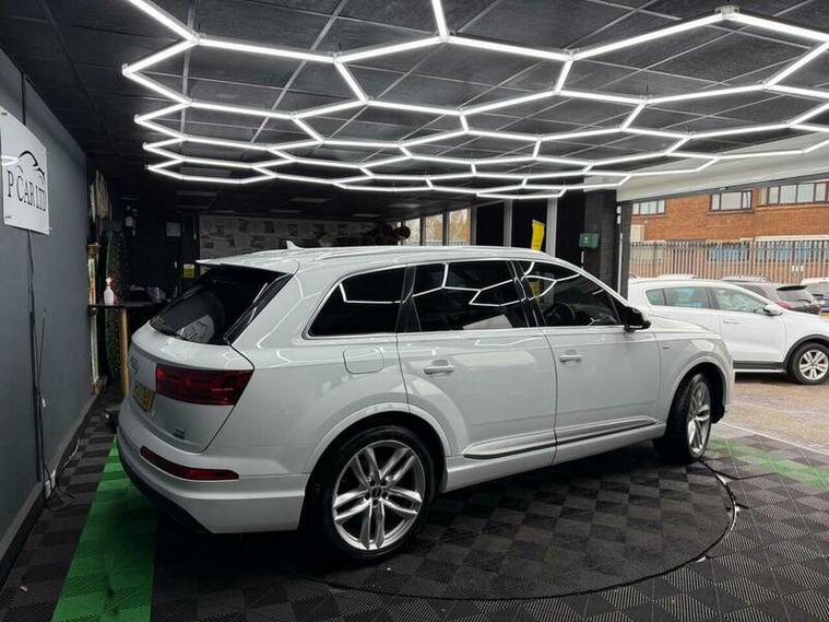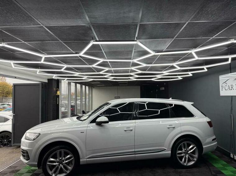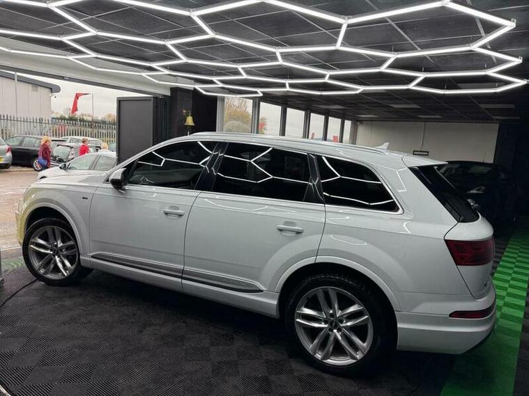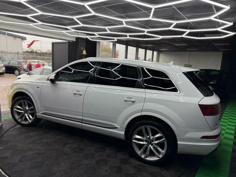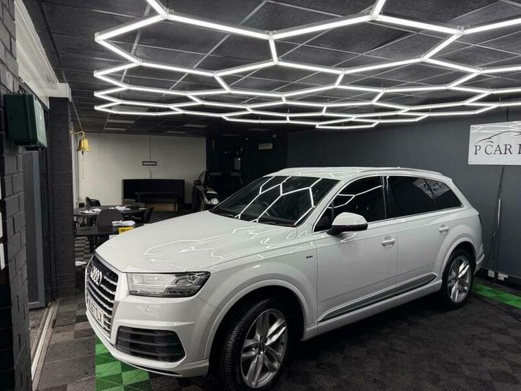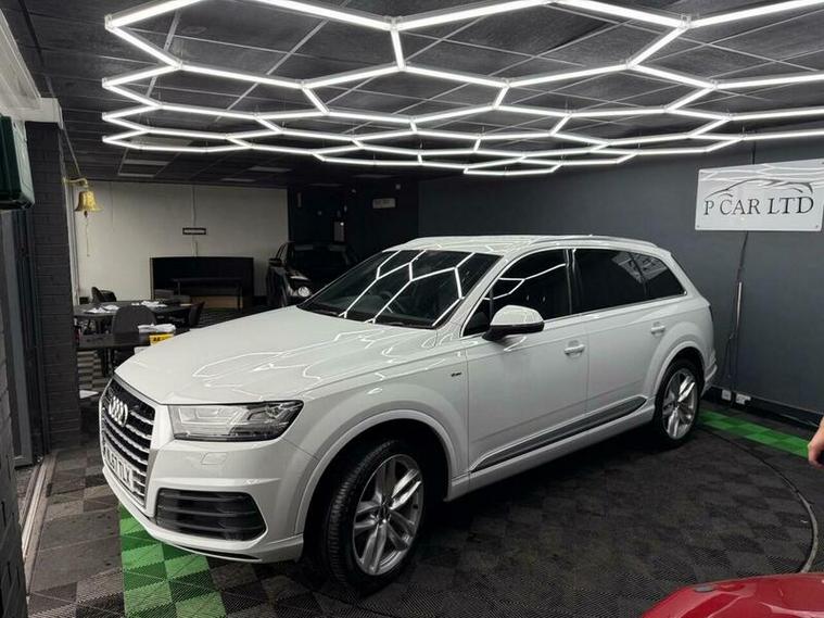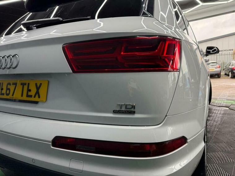This 2017 Audi Q7 TDI V6 S line is a superb example, having been owned by only one careful keeper since new. This impressive seven seater SUV boasts a powerful 3.0 litre diesel engine paired with Audi's renowned four wheel drive system, ensuring excellent performance and grip in all conditions. As a Euro 6 compliant vehicle, it meets stringent emission standards. The S line trim level adds a touch of sporty sophistication, and with a towing weight of 2800 kg, it?s ready for your adventures. Inside, you'll find comfort and convenience with Deluxe Four Zone Automatic Climate Control, heated front seats, and a Bluetooth interface for seamless connectivity. The All Weather LED headlights and light and rain sensor enhance visibility and safety.