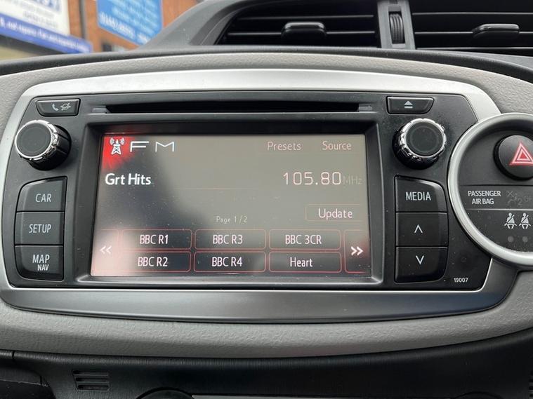 Toyota Yaris 1.3 VVT-IT T-Spirit, 5 Door, 6 Speed Manual. 2 Owners.The last owner has owned from 2016, Excellent Service History and a Very Impressive Specfication inc Sat Nav, Radio CD, Bluetooth, Aux and USB, Reverse Camera, Fixed Pan Roof with Sun Blind, Dual Zone Climate Control, Electric Windows, Electric Mirrors, Remote Central Locking, Leather Bound Multifunctional Height and Reach Adjustable Steering Wheel, Height Adjustable Drivers Seat, Keyless Push Button Engine Start/Stop, Alloy Wheels, Space Saver Spare Wheel & Tools. Part Exchange and Extended Warranties Available.
