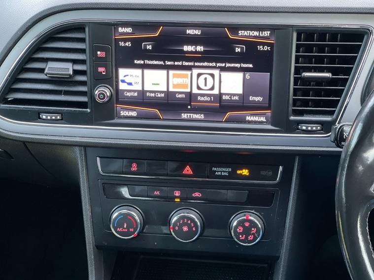 This 2017 SEAT Leon TSI SE Technology offers excellent value, boasting a remarkably low insurance group. This particular model is equipped with a 1.2 litre petrol engine and meets Euro 6 emission standards. Inside, you'll find a comprehensive SE Technology trim, featuring a user friendly Navigation System and Media System Plus, both of which include Bluetooth connectivity for seamless audio streaming and handsfree calls. The cabin also benefits from air conditioning, ensuring a comfortable environment whatever the weather.