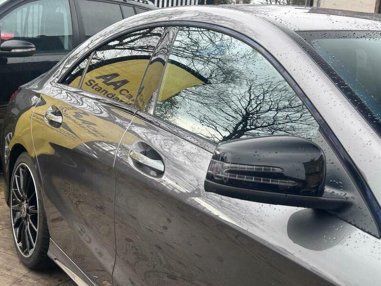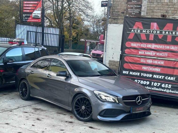 Absolutely stunning Mercedes CLA200d AMG Line now available at Ace motor sales. The car is presented in a well kept metallic grey accompanied by the gloss black 18? AMG alloy wheels. Interior is finished in half black leather with red stitching. This vehicle boasts brilliant fuel economy along with great performance, speed and comfort. This is well maintained example of the popular CLA which shows through the drive of the vehicle. Drives like a dream with plenty of power through all gears. HPI CLEAR. 2 Keys. 1 Owner From New!