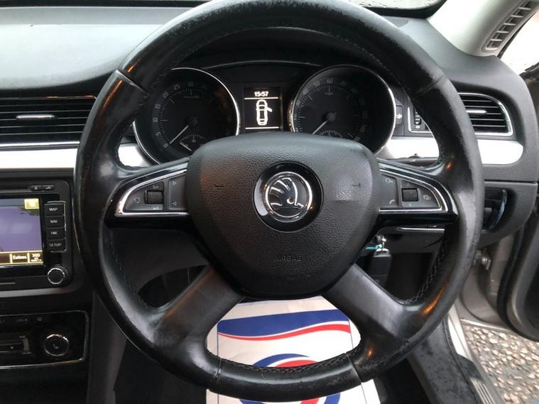 Stunning example of this highly sought after Skoda Superb 1.6D Elegance G Line model in Metallic Beige. Only £20 road tax for the year & excellent fuel economy. Packed with extras including Full leather seats, heated front elecric seats, Satellite Navigation, bluetooth, LED DRL, cruise control, auto lights, dashcam & Alloy wheels. Very tidy vehicle inside and out. HPI CLEAR, FULL 12 MONTHS MOT ON PURCHASE. SERVICE HISTORY. 2 KEYS. FULL BOOKPACK. FULL DEALER FACILITIES INC 7 DAYS A WEEK OPENING HOURS. 12 MONTHS FREE AA BREAKDOWN COVER INCLUDED. NO HIDDEN COSTS OR ADMIN FEES. VERY TIDY GENUINE EXAMPLE. FIRST TO SEE WITH BUY!!