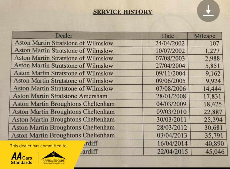 2002 ASTON MARTIN DB7 5.9 V12 VANTAGE AUTOMATIC IN STUNNING SILVER BIRCH METALLIC WITH CARBON BLACK ELECTRIC HEATED LEATHER UPHOLSTERY, ONLY 49000 MILES, IMMACULATE SERVICE HISTORY AND ALWAYS STORED INSIDE AND WINTERED UNDER A CAR COVER 4000 MILES COVERED OVER LAST 10 YEARS JUST SERVICED AND MOT'D 50 MILES AGO IN APRIL, HAS A CUSTOM COMPLETE STAINLESS STEEL EXHAUST SYSTEM. THIS CAR IN UNMARKED PRISTINE CONDITION AND IS A GREAT INVESTMENT OPPORTUNITY AS WILL ONLY APPRECIATE.