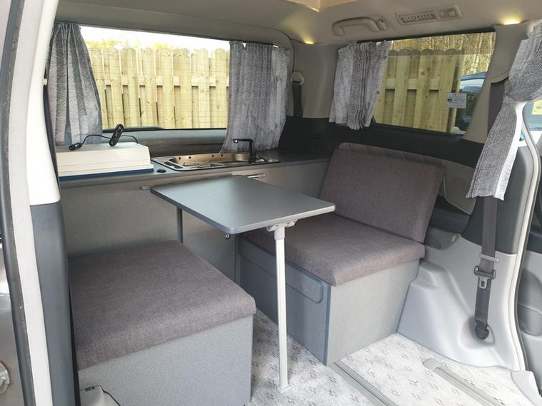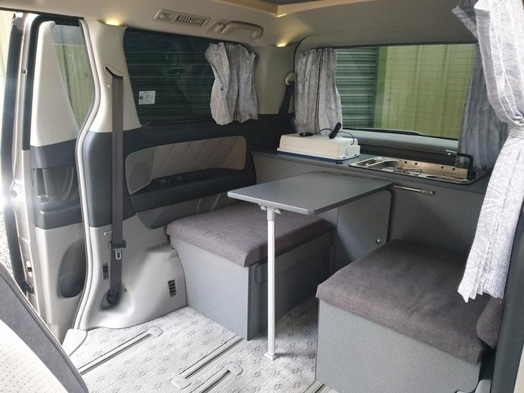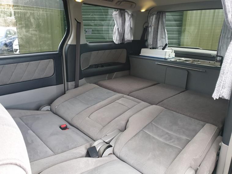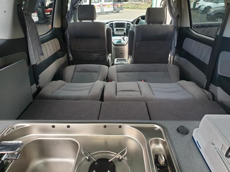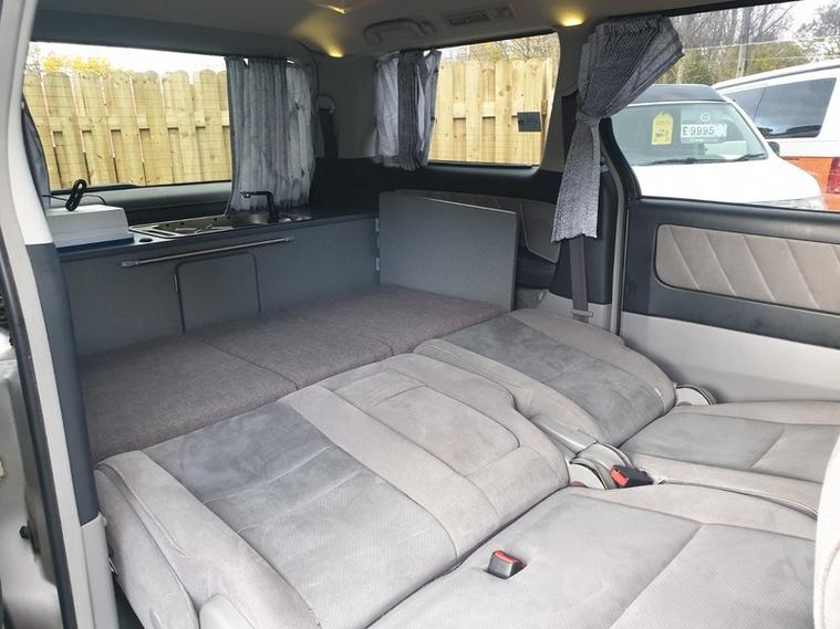 The Toyota Alphard 3.0 V6 4x4 is a micro campervan with a sleeping capacity for up to 3 people and a capability of transporting 5 people in comfort. It features automatic transmission, a reliable 2990cc engine and 4-wheel drive for safe and sure-footed travel. This vehicle also comes equipped with essential features such as a cooker, cool box, CD player, air conditioning, sink, 12V lighting, alarm, end kitchen, radio, blinds, mains hookup and pop-top. With its spacious interior and car-like handling, this campervan is a practical choice for road trips and new adventures.