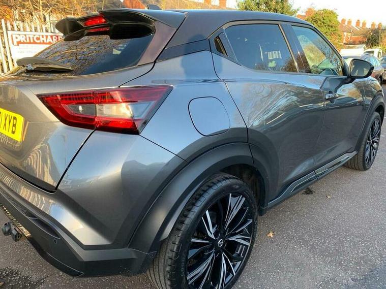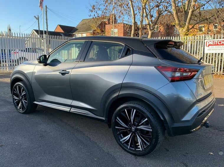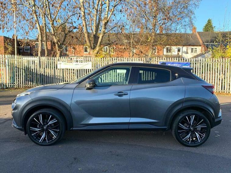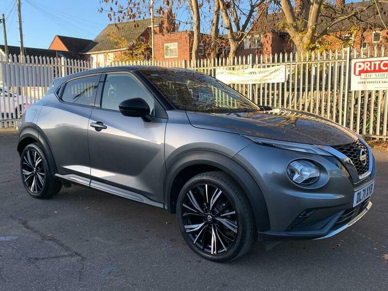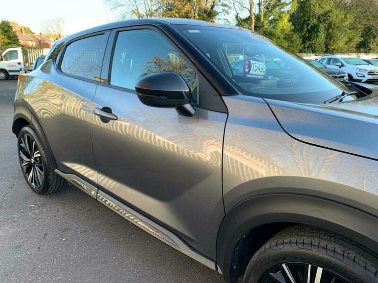 This 2021 Nissan Juke DIG-T Tekna+ boasts exceptionally low mileage for its age, having covered just 18, 203 miles, and has been owned by only one careful owner. This Euro 6 compliant 1.0 litre petrol model comes with a full dealership service history, a clear vehicle history check, and will be supplied with a 12 month MOT for your peace of mind. The Tekna+ trim level includes desirable features such as LED headlights, a keyless entry system with a push button start, and rear parking sensors to aid manoeuvring. Stay connected and entertained on every journey with Android Auto and Apple CarPlay integration, alongside USB, AUX, and Bluetooth connectivity.