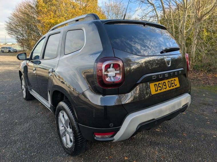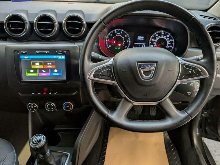 This 2019 Dacia Duster Blue dCi Comfort offers excellent value with a 3 month warranty for your peace of mind. This robust 1.5L diesel model, finished in the Comfort trim, is a Euro 6 compliant vehicle, meaning it meets strict emission standards. You'll find driving and parking made easier thanks to the front and rear parking sensors and rear view camera, which includes comprehensive parking assistance. Inside, enjoy the comfort of manual air conditioning and stay connected on the go with Bluetooth connectivity. The Duster also features full LED headlamps for improved visibility.