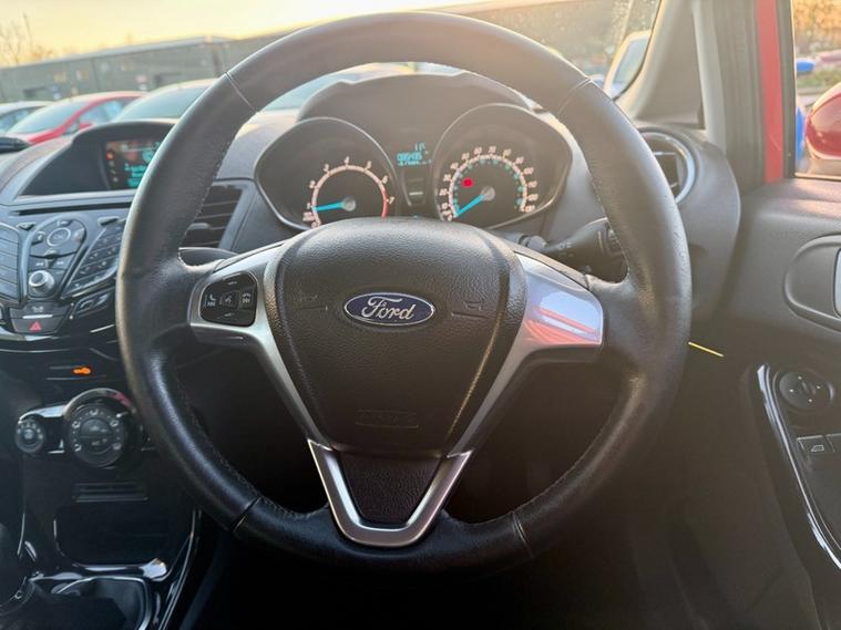Discover this 2015 Ford Fiesta Zetec, a popular choice for many drivers. This model is equipped with a 1.25 litre petrol engine and features manual air conditioning to keep you comfortable on every journey., , This Ford Fiesta Zetec stands out with its low insurance group, making it a cost effective option for many. Its Zetec trim level offers a well rounded package of features, ensuring a pleasant driving experience., 3 months warranty, 12 months MOT, Last serviced at 85, 422 miles, Part service history, Grey Cloth interior, 5 seats, Red, 2 owners, Upgrades - Lithos Cloth - Charcoal Black, Standard Features - 12V Power Socket - Front, 15in Alloy Wheels - 5x2 Spoke, ABS - Anti-lock Braking System, Aesthetic Lighting Package, Air Conditioning - Manual, Airbags - Curtain, Airbags - Driver Side Knee, Airbags - Front Passenger, Airbags - Head and Thorax, Airbags - Passenger Deactivation, Brake Warning Lights - Automatic Flashing of Brake Lights Under Heavy Braking, Bumpers - Front and Rear - Body Colour, Centre Console - with Trinket Tray - Two Cup Holders, Chrome Belt Line Finisher, Courtesy Light - Overhead with Theatre-Style Dimming, Courtesy Lights with Map Reading Lights, Door Handles - Body Colour, Door Mirrors - Electrically Operated and Heated, Drivers Airbag, EBA - Emergency Brake Assist, EBD - Electronic Brakeforce Distribution, ECOmode, EPAS - Electric Power Assisted Steering, ESP - Electronic Stability Programme, Electric Windows - Front with One Touch Lowering Drivers, Emergency Brake Warning - Automatic Hazard Warning Lights, Ford AM-FM CD Audio System, Ford Easy Fuel Capless Refuelling System with Misfuel Inhibitor, Front Fog Lights - Chrome Bezel Rings, Front Lower Grille Insert and Surround - Black, Front Seatback Map Pockets - Driver and Passenger, Front Upper Grille - Chrome Finish Surround, Front Upper Grille Insert - Chrome bars, Gear Knob - Leather, Gearshift Indicator Light, Gearshift Knob - Leather-Trimmed with Chrome Finish Bezel, Glovebox - Illuminated, Handbrake Release Knob - Chrome, Head Restraints - 2-way Adjustment, Head Restraints - Rear 2-Way Adjustment, Headlights - Courtesy Delay, Headlights - Follow Me Home, Headlights - Halogen Projector with Silver Bezel, Headliner - Woven, Heated Front Windscreen, High-Mounted Rear Brake Light, IPS - Intelligent Protection System, Interior Door Lever - Chrome Finish, LED Ambient Courtesy Lighting, Leather-Trimmed Handbrake, Loadspace Compartment Light, Loadspace Floor Carpet, Locking Wheel Nuts, MyKey, Passenger Airbag Deactivation Indicator, Passengers seat manual 2-way adjustment, Pollen Filter, Rake and Reach Steering Adjustable, Rear Courtesy Lights, Rear Seats Back - Carpet, Rear Spoiler - Body Colour, Remote Central Locking, Removable Package Tray, Seats - 60-40 Split Folding Back and Fixed Cushion, Seats - Drivers 4-Way Adjustment, Seats - Front Comfort Style, Seats - ISOFIX Mounting Brackets for Child Seats, Second Remote Ignition Key, Steering Wheel - 3-Spoke - Leather Trimmed with Bezel, Steering Wheel - Multifunction, Stowage Pockets - Driver and Front Passenger Seatbacks, Suspension - Front Stabiliser Bar, Tailgate Handle - Body Colour with Chrome Finisher, Trip Computer, Tyre Inflator Kit, USB and AUX Connection for External Music Devices, AS WE ARE AN AA CARS DEALER THIS VEHICLE COMES WITH 12 MONTHS AA BREAKDOWN COVER.