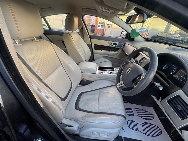 2013 (62) Jaguar XF 2.2d [200] Portfolio 4dr Automatic in Grey. Well maintained example with full service history, 2 keys and 3 previous owners. Runs and Drives brilliantly, a highly luxurious drive. Portfolio specification, over £42, 000 new. This includes Heated and Cooled electric leather seats, Navigation, Reverse camera, Cruise control, Automatic lights/wipers, Meridian sound system, 19 inch alloy wheels, Bluetooth connectivity and more. 12 Months MOT and 6 Months Warranty with the sale (last service September 2025 at 108, 634). 200 BHP, pulls really well and can still return over 54 MPG combined.