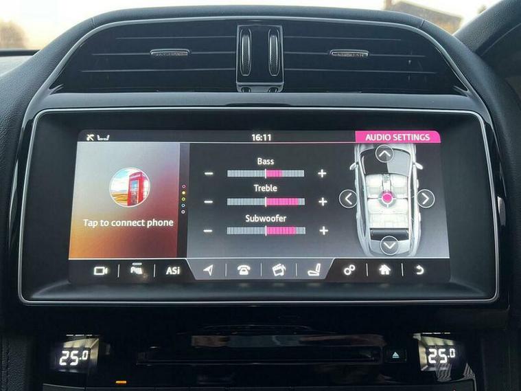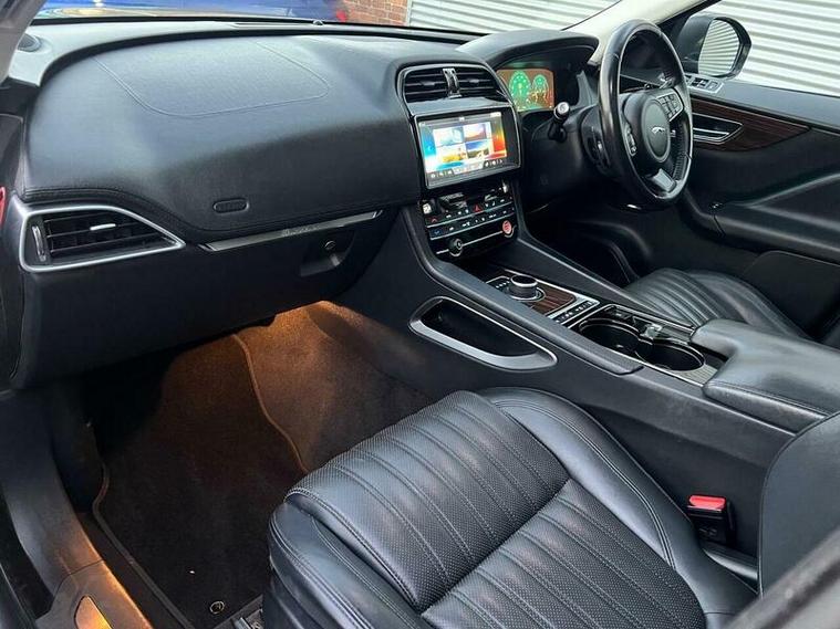 This F-PACE stands out with its Meridian Digital Sound System and a 10in Touch Pro Dual View screen for enhanced entertainment. For safety and convenience, it includes Lane Keep Assist and a Driver Condition Monitor, alongside striking Xenon headlights. Enjoy the open air with the fixed Panoramic Roof and a spacious boot, perfect for all your needs. Performance is also a strong point, with an acceleration of 0-60mph in just 8.2 seconds, and an excellent fuel economy of 53 mpg, making it a more efficient and responsive choice compared to many similar vehicles. The substantial towing weight of 2400 kg further enhances its versatility.