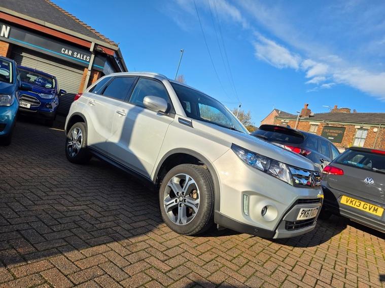 Steve Pearson Car Sales are Pleased to Present this Super Low Mileage Suzuki Vitara 1.6 SZ5 DDIS Allgrip in Metallic Silver. Only One Owner from New with Service History. All usual Suzuki refinements include... ABS, Air conditioning, alarm, diamond cut alloy wheels, central locking, climate control, electeic windows/mirrors, panoramic roof, 12v power socket, USB input, power steering, adjustable steering, bluetooth, brake assist, cruise control, cup holders, day time running lights, engine immobiliser, four wheel drive, front airbags, front fog lights, heated wing mirrors, ISOFix anchor point, hill start assist, mp3, reverse parking camera, touch screen media system, satellite navigation, DAB radio, side impact airbags, speakers, steering wheel control, traction control etc.... Unbelievably Low Mileage, Spacious 4X4. Looks and Drives Superb. Car comes with 2 keys, professionally valeted and fully HPI checked. We welcome Part Exchange and can offer Great Finance Deals, , Please take a look at our TESTIMONIALS On our Website and Buy In confidence from a long Established Family Firm at dealer's website where we have over 60 cars in stock, for more information please telephone or pop in for a cup of tea! Our showroom and floodlit forecourt are open 7 days a week, , Tameside's Finest Collection of Low Mileage Quality Cars