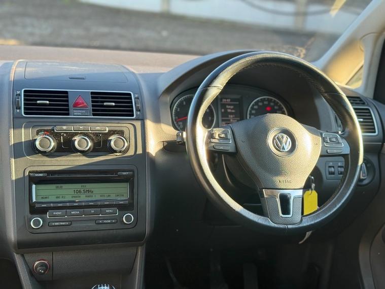 This 2011 Volkswagen Touran TSI SE boasts a full service history, offering peace of mind for its next owner. This versatile 7 seater MPV is powered by an efficient 1.4 litre petrol engine and comes with a 3 month warranty for added security. The SE trim level includes electronic climate control for personalised comfort, along with front and rear parking sensors and Park Assist to make manoeuvring effortless. The Touran TSI SE offers a responsive drive, accelerating from 0 to 62 miles per hour in just 9.5 seconds. This performance, combined with its practical 7 seat layout and comprehensive parking assistance features, sets it apart from other vehicles in its class, making it an excellent choice for families or those needing flexible space and a comfortable journey.