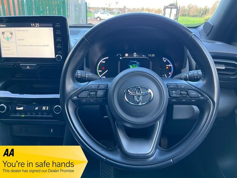 JUST ARRIVED!! 1 OWNER VEHICLE FROM NEW & SUPPLIES WITH FULL TOYOTA SERVICE HISTORY (7 TOYOTA STAMPS) STILL UNDER TOYOTA WARRANTY!! VEHICLE FEATURES TO INCLUDE APPLE CAR PLAY, DAB RADIO, CRUISE CONTROL, LANE ASSIST, BLUETOOTH, ECO MODE + MUCH MORE!! PLEASE CALL SAM ON 01163432895 TO ARRANGE A VIEWING OR TEST DRIVE. FULLY HPI CLEAR, BEST PRICES PAID FOR ANY PART EXCHANGE VEHICLES!! This 2022 Toyota Yaris Cross VVT-h Design is a superb example, having had only one owner since new. This stylish compact SUV boasts a 1.5L Petrol Hybrid engine, meeting Euro 6 emission standards. It comes equipped with a suite of intelligent features designed for convenience and safety, including Bluetooth connectivity for seamless phone integration, and Intelligent Adaptive Cruise Control to make journeys more relaxed. You'll also appreciate the Smart Entry and Push Button Start system, allowing for keyless access and ignition, while LED Projector Headlights provide excellent visibility. Maneuvering is made easier with the integrated Reversing Camera.