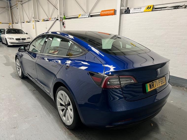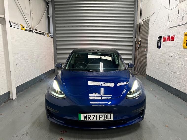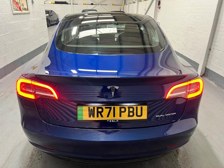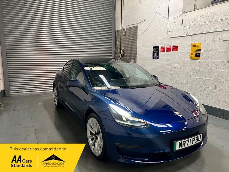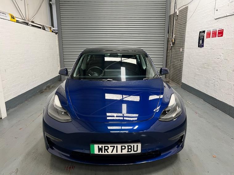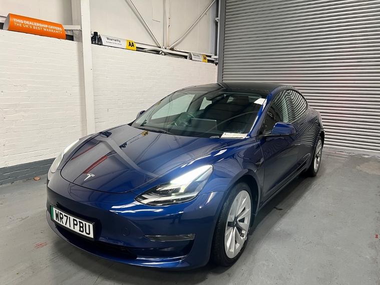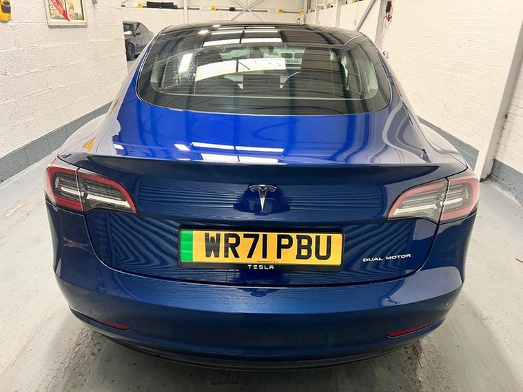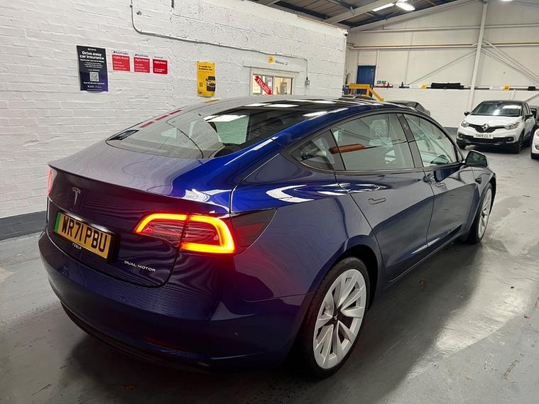 Car Box are delighted to present this low mileage, 1 owner, Tesla Model 3 (Dual Motor) Long Range Auto 4WD in stunning 'deep blue meallic paint. With only 51k miles and a Grade A Battery, this 2021 Tesla Model 3 Long Range offers an appealing opportunity to own a modern electric vehicle. As a Long Range variant with four-wheel drive, this Tesla provides enhanced stability and performance. The vehicle is equipped with desirable features including Heated Front and rear Seats, Wood Trim, 19' Silver Alloy Wheels, All black Premium Interior, Long Range All Wheel Drive, Panoramic Roof, LED headlights, and rear parking sensors to assist with everyday driving. Passengers can enjoy the comfort of the Cold Weather Feature which includes front and rear heated seats, heated steering wheel and the expansive view offered by the fixed panoramic glass roof as well as Supercharger Network Access + Pay As You Go.