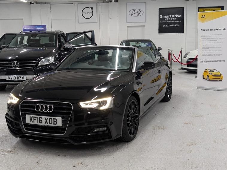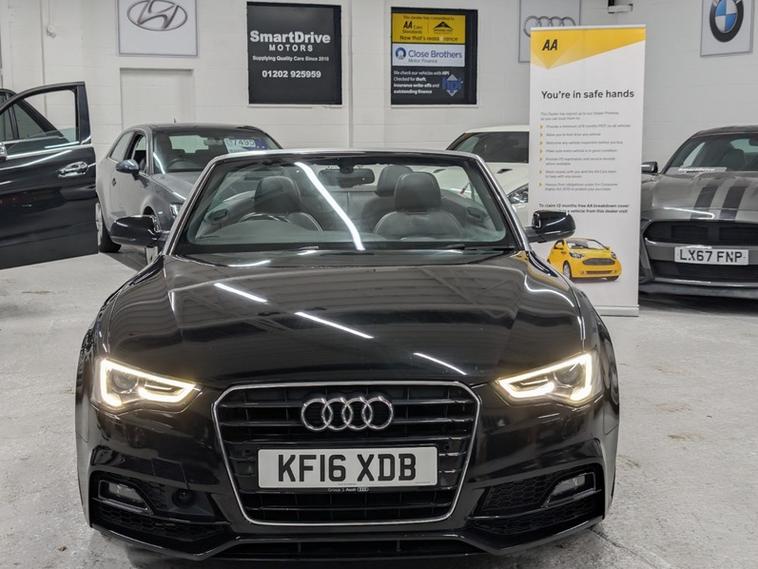 Audi A5 Cabriolet S Line Special Eds Plus 2016 Automatic 2.0 TDI Convertible Full Service History Cambelt Changed at 51k. Full Service History, Heated Seats, Adaptive Cruise Control, Electric Folding Mirrors, Memory Seats, Vented Seats, SatNav, Trip Computer, Reverse Camera, Front and Rear Parking Sensors, Xenon Headlights and many more. Service Intervals; 14k, 25k, 41k, 51k, and 71k. Urban 45.6 MPG, Extra-Urban 58.9 MPG, and Combined 53.3 MPG. Tax 12 months £195 and Insurance Group 35E.