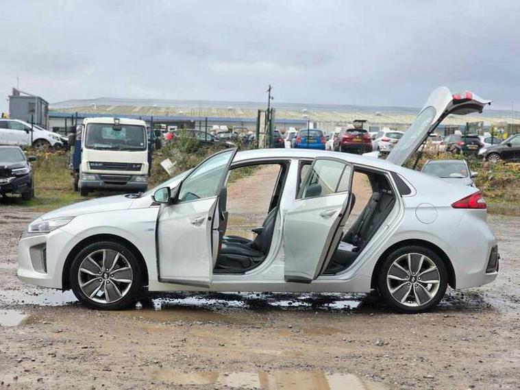 This car comes with 5 seats, Silver, 2 owners, 12V Power Outlet, 15in Alloy Wheels, ABS - Anti-Lock Brake System, Air Conditioning - Driver-Only Mode, Airbags - Front - Front Side - Curtain and Drivers Knee, Alloy Pedals, Arm Rest - Front with Storage, Automatic De-Fog System for Front Windscreen, Automatic Dimming Rear View Mirror, Automatic Headlights with Dusk Sensor, Automatic Windscreen Wipers with Rain Sensor, Autonomous Emergency Brake, Blind Spot Monitor, Bluetooth Connectivity, Centre Console - Tablet Storage, Climate Control - Dual Zone, Cruise Control - Adaptive, Cup Holders - Front, Daytime Running Lights - LED, Deadlocks, Door Mirror Puddle Lights, Door Mirrors - Body Coloured, Door Mirrors - Electric Folding, Door Scuff - Chrome with IONIQ Logo, Drive Mode Select - Gear Lever, Drivers Seat - Ventilated, Drivers Seat Electric Adjustments, Drivers Supervision Instrument Cluster with TFT Display - 7in, Electric Power Steering with Variable Drive Modes, Electric Rear Windows, Electric Windows - Front with Anti-trap and One-touch Controls, Electronic Stability Control - ESC, Exterior Door Handles - Chrome Effect, Fog Lights - LED Rear, Front Head Restraints - Vertical and Horizontal Adjustment, Front Passenger Airbag De-Activation Switch, Front Passengers Seat - Heated, Front Passengers Seat - Ventilated, Front Seat Back Pockets - Drivers Seat, Front Seat Back Pockets - Passengers Seat, HAC - Hill-Start Assist Control, Head Restraints - Rear with Vertical Adjustment, Headlights - Bi-Xenon, Heated Rear Seats, Heated Rear Windscreen, Heated Steering Wheel, Indicator Lights - Door Mirror - LED, Infinity Premium Sound System, Interior Door Handles - Chrome Effect, Interior Light - Centre, Interior Light - Luggage Compartment, Interior Light - Map Reading Lights, Lane Departure Warning System with Lane Keeping Assist, Leather Effect Glove Box, Leather Wrapped Steering Wheel, Luggage Net, Parking Brake - Foot, Parking Sensors - Front and Rear, Passenger Seat Height Adjustment - Manual, Phone Connection - Android Auto, Phone Connection - Apple CarPlay, Positioning Lights - C Shape LED, Radiator Grille - Active Air Flap, Radio - RDS and Digital Radio - DAB, Rear Air Vents in Centre Console, Rear Bumper - Two-Tone, Rear Cross Traffic Alert - RCTA, Rear Spoiler with Integral LED Brake Light, Rear View Parking Camera with Parking Guidance System, Remote Central Locking, Seats - Drivers Lumbar Adjustment, Seats - Drivers Memory, Seats - Heated Drivers, Side Body Moulding, Smart Key, Solar Glass with Windscreen Shade Band, Space Saver Emergency Spare Wheel, Split Folding Rear Seats - 60-40, Steering Wheel with Audio - Phone and Cruise Controls, Sun Visors with Driver and Passenger Illuminated Vanity Mirrors, Sunglasses Holder, Touchscreen Satellite Navigation - 8in, Tyre Pressure Monitoring System - TPMS, USB - Drivers Arm Rest, USB and AUX Connections, Window Surround - Chrome Finish, Windscreen Washer Fluid Sensor and Warning Indicator, Wireless Phone Charging Pad,