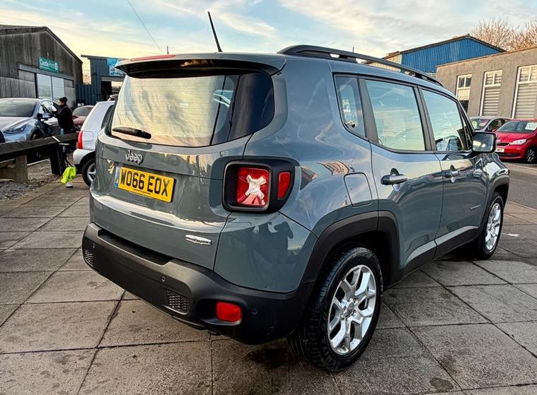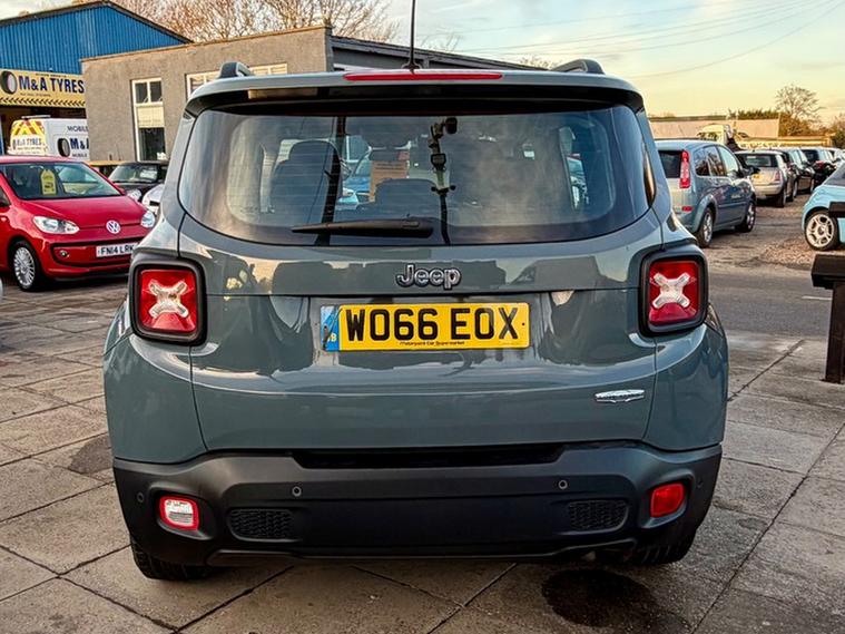 A distinctively styled Jeep Renegade Longitude with the tough jeep look, with unique interior details like ?willys? graphics and map outline, in nardo grey, powered by its 1.4 petrol turbo engine producing 140BHP. 17inch alloy wheels, black roof rails, textile trimmed seats