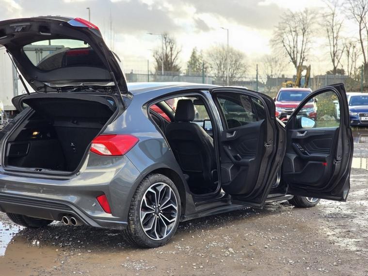 This car comes with 5 seats, Grey, 18in Alloy Wheels - 5x2 Spoke - ST-Line Matt Black Machined Black, 4.2in TFT Instrument Cluster Screen, 6-Way Power Adjustment Driver Seat, 8in Touchscreen Colour Display, Airbags - Driver and Front Passenger, Airbags - Front Side Impact, Airbags - Front and Rear Side Curtain, Alloy Finish Pedals, Anti-Lock Braking System - ABS with Electronic Brake Force Distribution - EBD, Automatic Dimming Rear View Mirror, Body Colour Bumpers, Centre Console with Armrest, Courtesy Light - Front and Rear Passengers - Overhead Halogen and Load Compartment, Cruise Control with Speed Limiter, DEATC - Dual-Zone Electronic Automatic Temperature Control, Door Handles - Body Colour, Drivers Seat Lumbar Adjust, EPAS - Electric Power Assisted Steering, Electric Parking Brake, Emergency Brake Warning, Enhanced Electronic Stability Control - ESC with Traction Control - Emergency Brake Assist - EBA - Hill Start Assist - HSA, Ford Easy Fuel - Capless Refuelling System, Ford Eco Mode - Driver Information System, Ford SYNC3 DAB Navigation System, FordPass Connect, Front Passenger Airbag Deactivation Switch, Front Seat - Drivers Manual Height and Fore-Aft Adjustment, Front Seat - Passengers Manual Fore-Aft Adjustment, Front Seats - Sports Style, Front Suspension - Independent with MacPherson Struts and Anti-Roll Bar, Front and Rear Floor Mats with Red Stitching, Front and Rear Seatbelt Minder, Headlights - Halogen, Headliner - Black Woven, Heated Front Seats, IPS - Intelligent Protection System, Intelligent Speed Assistance, LED Daytime Running Lights, LED Front Fog Lights with Cornering Function, Lane Keeping Aid with Lane Departure Warning, Leather-Trimmed Handbrake, Locking Wheel Nuts, MyKey, Paddle Shift, Parking Sensor - Front and Rear, Passenger Seat Manual Height and Lumbar Adjust, Polished Twin Tailpipe, Post Collision Braking, Power Folding Door Mirrors with Puddle Lights, Pre-Collision Assist with Autonomous Emergency Braking and Pedestrian-Cyclist Detection, Pre-Collision Assist with Pedestrian Detection, Quickclear Heated Windscreen, Rain Sensitive Windshield Wipers, Rear Centre Headrest, Rear Privacy Glass, Rear Spoiler - Body Colour - Large, Red Brake Calipers, Remote Central Locking and Engine Immobiliser, Rotary Gear Shift Dial, ST Line Stainless Steel Scuff Plates, Seats - ISOFIX Mounting Provision for Child Seats, Selectable Drive Mode, Soft Console Knee Pads with Red Stitching, Spare Wheel - Mini Steel, Sports Tuned Suspension, Steering Column - Rake and Reach Adjustment, Steering Wheel - 3-Spoke Flat Bottom - Leather Trimmed with Red Stitching, Thatcham Category 1 Alarm, Trip Computer, Tyre Pressure Monitoring System, Unique ST-Line Upper and Lower Grille and Full Bodystyling Kit and ST-Line Wing Badges, Windows - Electrically Operated Front and Rear with One Touch Opening and Closing, Wipers - Standard with 6 Speed Interval Settings,