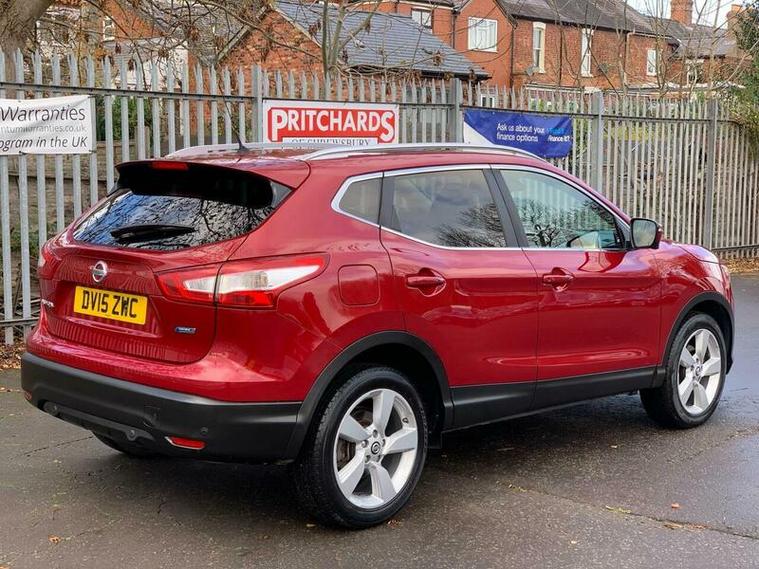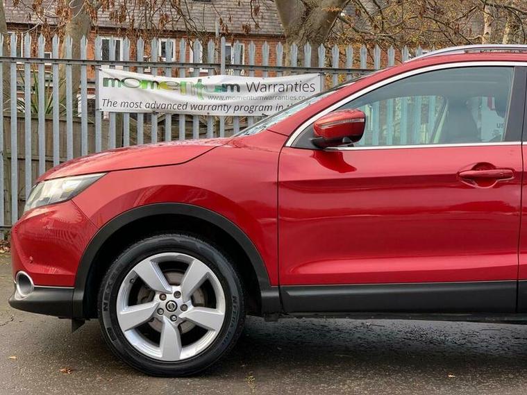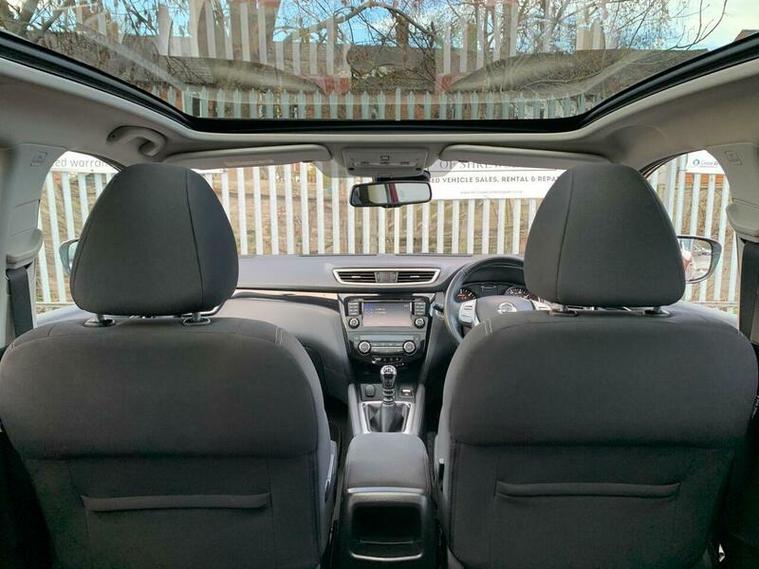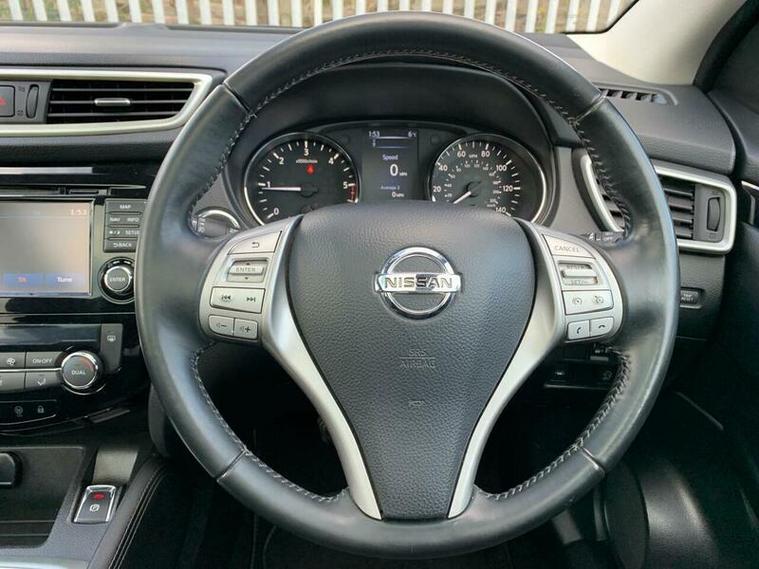 Here is our 2015 Nissan Qashqai dCi n-tec+ with low mileage for its age, having covered just 63, 542 miles. It has near full main dealer Nissan service history up to 2021. This well maintained vehicle has had only two owners and boasts a frugal 1.5L diesel engine. Inside, you'll appreciate the comfort of dual zone climate control and the expansive feel provided by the panoramic glass roof. Parking is made effortless with front and rear parking sensors, complemented by the advanced Around View Monitor offering a 360 degree bird's eye view of your surroundings.