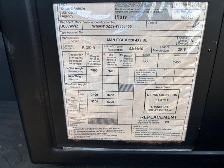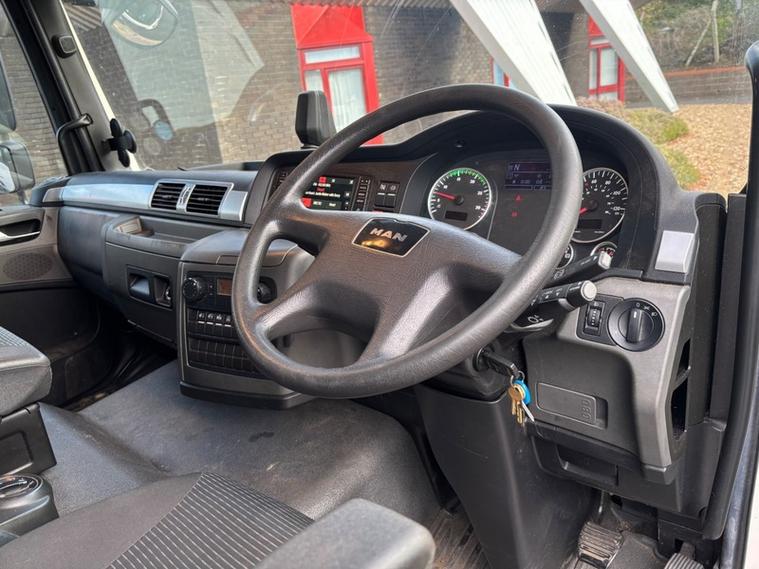 Full dealership history, Clean bodywork, Interior - Clean Condition, 4x2, 3 seats, White, One Owner from New with a Fully Documented MAN Service History. 220 BHP Euro 6 Engine coupled to the Auto Gearbox. Inspected every 6 Weeks. Plated at 7.5 Tons. MOT until 28.02.26. Tacho inspected 21.01.25, 1 owner, Upgrades - Full MAN Documented Service History, Euro 6 with Adblue, Air Conditioning, Rear Adjustable Air Suspension, Satellite Navigation, Bluetooth, Air Suspended Drivers Seat, Radio, CD Player, Cruise control, Electric windows, Electric mirrors, Heated mirrors, Arm rests, Onboard computer, Tachograph - Digital, Tail Lift - Column, Tie Rails, ABS, Adjustable steering wheel, Door - Roller shutter door, Dual passenger seat, Electronic braking system (EBS), Exhaust brake, Traction control (ASR), Air brakes, Power steering, Central locking x2 Keys. Finance is available on this Truck £19995 +VAT