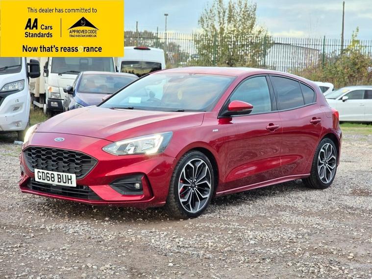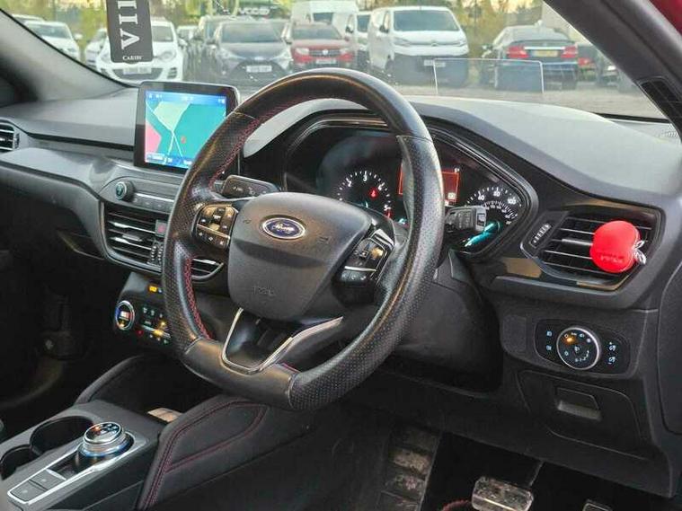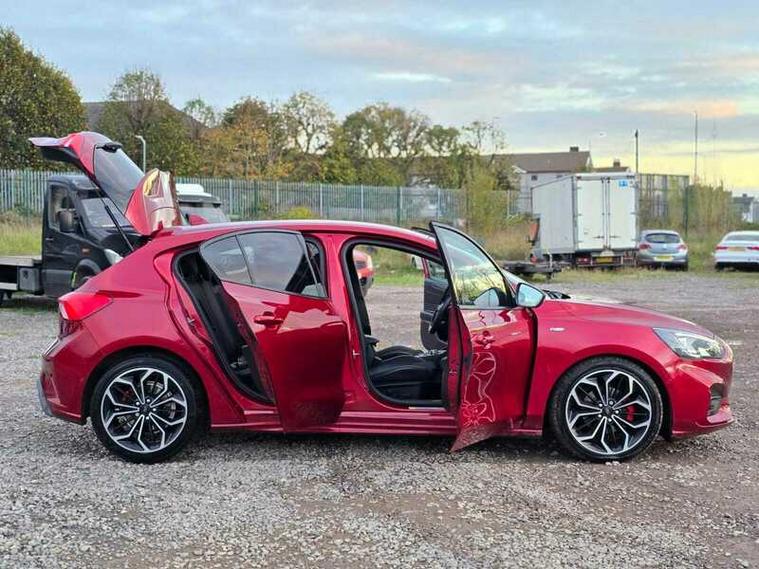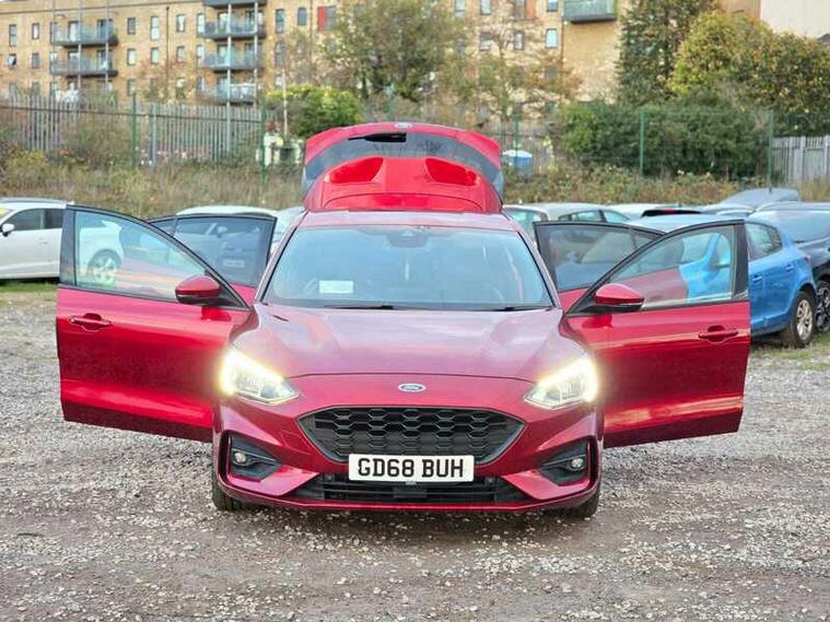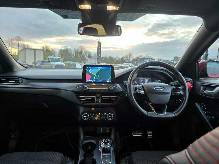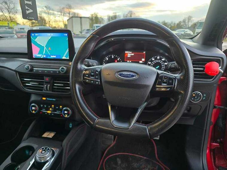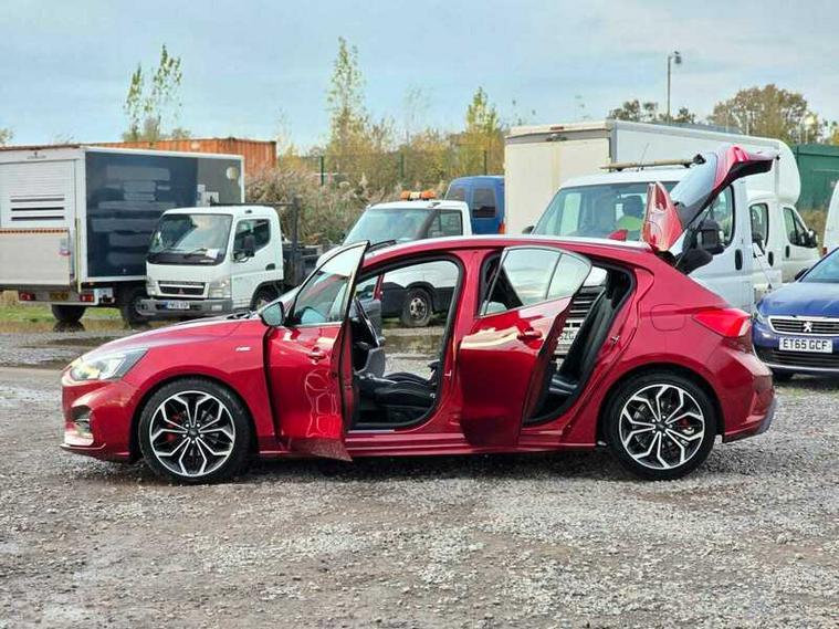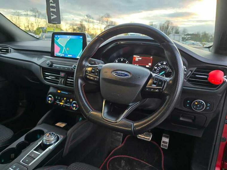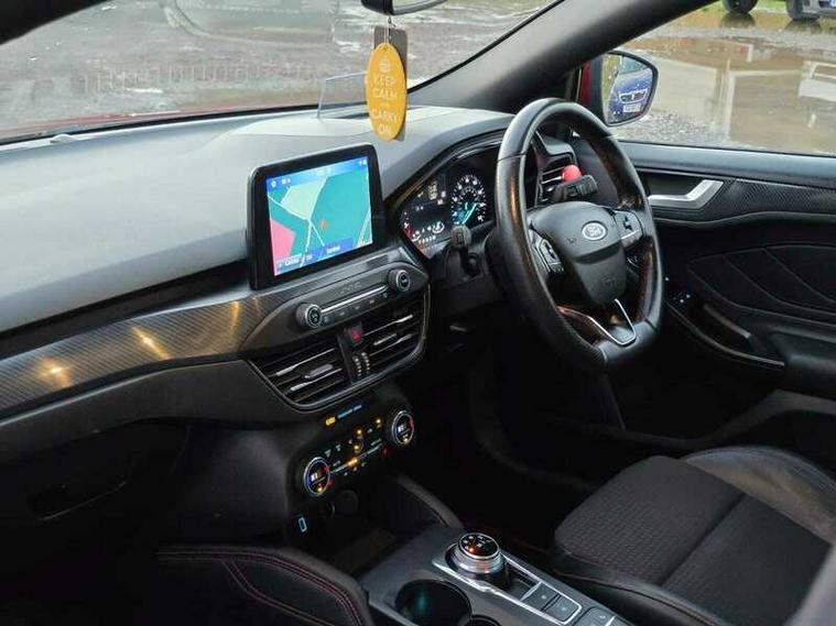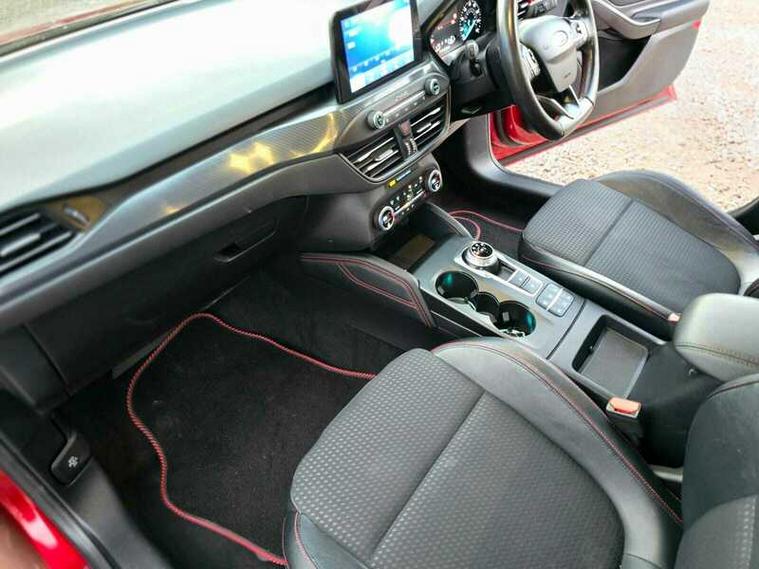This car comes with 5 seats, Red, 3 owners, 18in Alloy Wheels - 5x2 Spoke - ST-Line Matt Black Machined Black, 4.2in TFT Instrument Cluster Screen, 6-Way Power Adjustment Driver Seat, 8in Touchscreen Colour Display, Airbags - Driver and Front Passenger, Airbags - Front Side Impact, Airbags - Front and Rear Side Curtain, Alloy Finish Pedals, Anti-Lock Braking System - ABS with Electronic Brake Force Distribution - EBD, Automatic Dimming Rear View Mirror, Body Colour Bumpers, Centre Console with Armrest, Courtesy Light - Front and Rear Passengers - Overhead Halogen and Load Compartment, Cruise Control with Speed Limiter, DEATC - Dual-Zone Electronic Automatic Temperature Control, Door Handles - Body Colour, Drivers Seat Lumbar Adjust, EPAS - Electric Power Assisted Steering, Electric Parking Brake, Emergency Brake Warning, Enhanced Electronic Stability Control - ESC with Traction Control - Emergency Brake Assist - EBA - Hill Start Assist - HSA, Ford Easy Fuel - Capless Refuelling System, Ford Eco Mode - Driver Information System, Ford SYNC3 DAB Navigation System, FordPass Connect, Front Passenger Airbag Deactivation Switch, Front Seat - Drivers Manual Height and Fore-Aft Adjustment, Front Seat - Passengers Manual Fore-Aft Adjustment, Front Seats - Sports Style, Front Suspension - Independent with MacPherson Struts and Anti-Roll Bar, Front and Rear Floor Mats with Red Stitching, Front and Rear Seatbelt Minder, Headlights - Halogen, Headliner - Black Woven, Heated Front Seats, IPS - Intelligent Protection System, Intelligent Speed Assistance, LED Daytime Running Lights, LED Front Fog Lights with Cornering Function, Lane Keeping Aid with Lane Departure Warning, Leather-Trimmed Handbrake, Locking Wheel Nuts, MyKey, Paddle Shift, Parking Sensor - Front and Rear, Passenger Seat Manual Height and Lumbar Adjust, Polished Twin Tailpipe, Post Collision Braking, Power Folding Door Mirrors with Puddle Lights, Pre-Collision Assist with Autonomous Emergency Braking and Pedestrian-Cyclist Detection, Pre-Collision Assist with Pedestrian Detection, Quickclear Heated Windscreen, Rain Sensitive Windshield Wipers, Rear Centre Headrest, Rear Privacy Glass, Rear Spoiler - Body Colour - Large, Red Brake Calipers, Remote Central Locking and Engine Immobiliser, Rotary Gear Shift Dial, ST Line Stainless Steel Scuff Plates, Seats - ISOFIX Mounting Provision for Child Seats, Selectable Drive Mode, Soft Console Knee Pads with Red Stitching, Spare Wheel - Mini Steel, Sports Tuned Suspension, Steering Column - Rake and Reach Adjustment, Steering Wheel - 3-Spoke Flat Bottom - Leather Trimmed with Red Stitching, Thatcham Category 1 Alarm, Trip Computer, Tyre Pressure Monitoring System, Unique ST-Line Upper and Lower Grille and Full Bodystyling Kit and ST-Line Wing Badges, Windows - Electrically Operated Front and Rear with One Touch Opening and Closing, Wipers - Standard with 6 Speed Interval Settings,