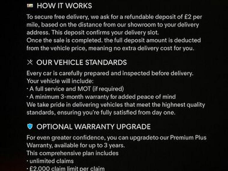 ???? Celebrating 9 Years of Success ? 9th Anniversary Bumper Offer! ????, , We?re proud to celebrate 9 successful years in business, and as a thank you to our valued customers, we?re bringing you this special anniversary offer:, , ? 3 Months Warranty included with every car, covered by Green Cover , , , ? Unlimited claims, Unlimited Courtesy cars covered by Green Cover and always, option to upgrade., , ? Option to upgrade your warranty (Premier Cover) for up to 3 years, , ? Fresh service carried out (if required), , ? Fresh MOT provided if less than 6 months remain, , ? 5 Days Drive Away Insurance with AA ? only £49.99, , ?Free 1 Year AA Basic Breakdown Cover included, , ?Great news! Nationwide delivery is now available ? bringing your next car right toyourdoorstep., (T&Cs apply?contact us or view our Terms&Conditions detail.), , We are a trusted used car dealership in East London with 9 years of proven success. With many years of experience in the motor trade, we are proud to be your **specialist choice for quality second-hand cars and vans., , All our vehicles are HPI checked with Experian, and we provide a **FREE HPI report ? so there are no hidden surprises., , ### ? Our Registrations & Trust Marks, , - Financial Conduct Authority (FCA) Registered ? 951476, , - Companies House dealer's website Registered ? 10225602, , - VAT Registered Firm ? GB269742360, , - ICO Registered under UK GDPR ? ZB131613, , ???? Buy With Confidence, , , - Warranty packages available: 3M, 6M, 12M, 24M, 36M, , - All cars come with minimum 6 months MOT (Fresh MOT if less than 6 months left at the time of sale), , - Service & MOT plans available ? call for a quote, , - All types of cards accepted ????, , - Finance available ? flexible & competitive deals, , - Free Car Finder Service, , - Free Part Exchange Valuation ? PX welcome, , - Family-run business with excellent track record, , - New stock arriving daily ? vehicles bought & sold, , ???? Call us today: 02030182578 ???? Visit us in Romford and drive away with peace of mind & unbeatablevalue!,