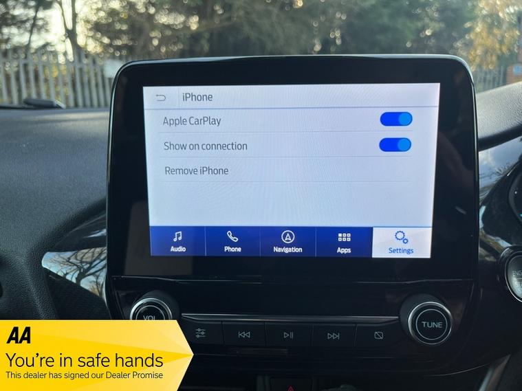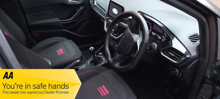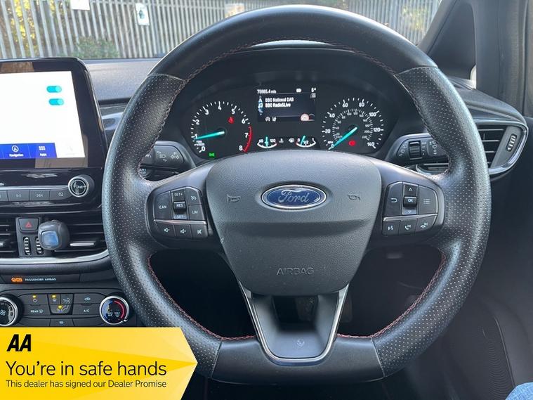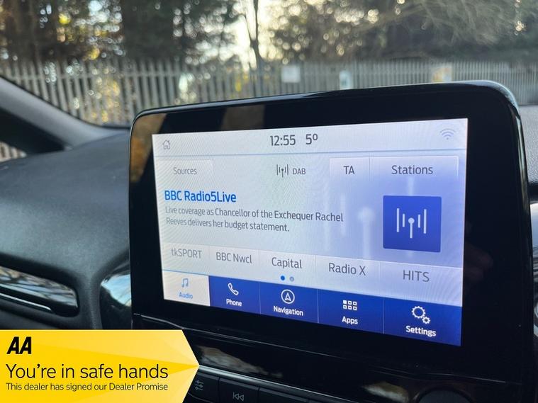 This 2022 Ford Fiesta ST ST Line Edition is a superb example, having had only one owner since new. This stylish hatchback boasts a responsive 1.0L petrol engine and meets Euro 6 emissions standards. Its ST Line Edition trim enhances its sporty appeal, and you'll appreciate the convenience of automatic headlights with daytime running lights, rear parking distance sensors, and a comprehensive Ford Navigation System featuring Ford SYNC 3, compatible with both Apple CarPlay and Android Auto. The NCAP Pack further adds to its safety credentials.