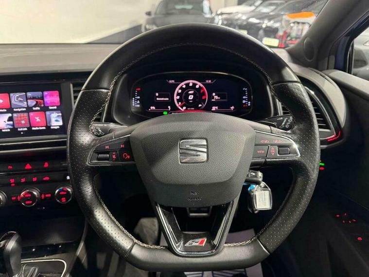 - Flat Bottomed-Perforated Leather Steering Wheel with White Stitching and CUPRA Logo